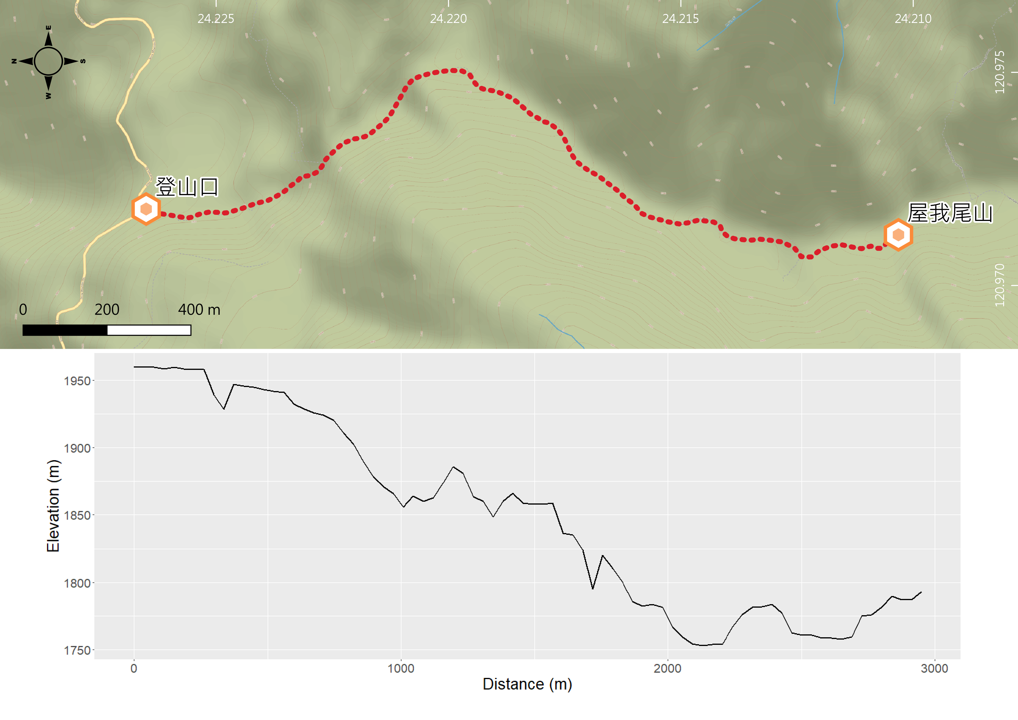 ▲ 用 Qgis 跟 R 產製距離與高程圖