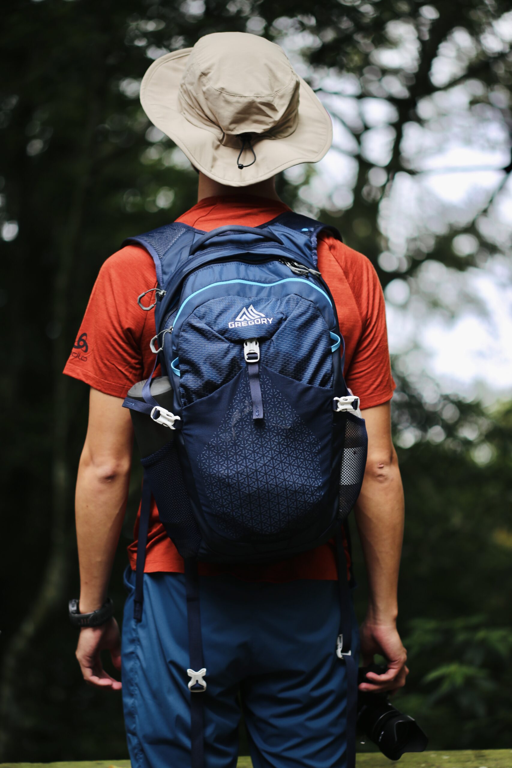 除了穿在身上的衣物之外,背包也是相當重要的裝備,要在容量與輕量化之間取得平衡,又保有背負舒適度與機能性,我想 Gregory 20L NANO 多功能背包可以很好的勝任這個工作。背包整體扎實堅固,主袋空間完整夠用,我甚至可以把相機側背包塞進去還有空間,另外有水袋拉鍊隔間,也可兼作平板電腦或筆記型電腦隔間,日常都市使用也沒問題。除了內部空間外,前方大網布袋鼠袋的收納空間可以放一些容易髒或不怕濕的物品,像是雨褲,可以方便拿取。兩側邊彈性網布可收納水瓶或雨傘。另外有可收納的織帶型腰帶,在需要時提供腰部支撐與分擔負重,不需要時則可收納起來。前方有拉鍊收納隔間,內附有鑰匙扣,可以放頭燈、電池、鑰匙等小物。