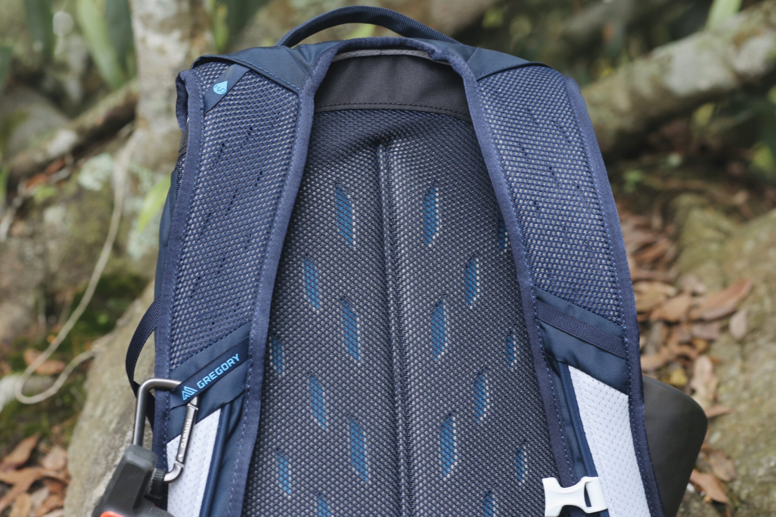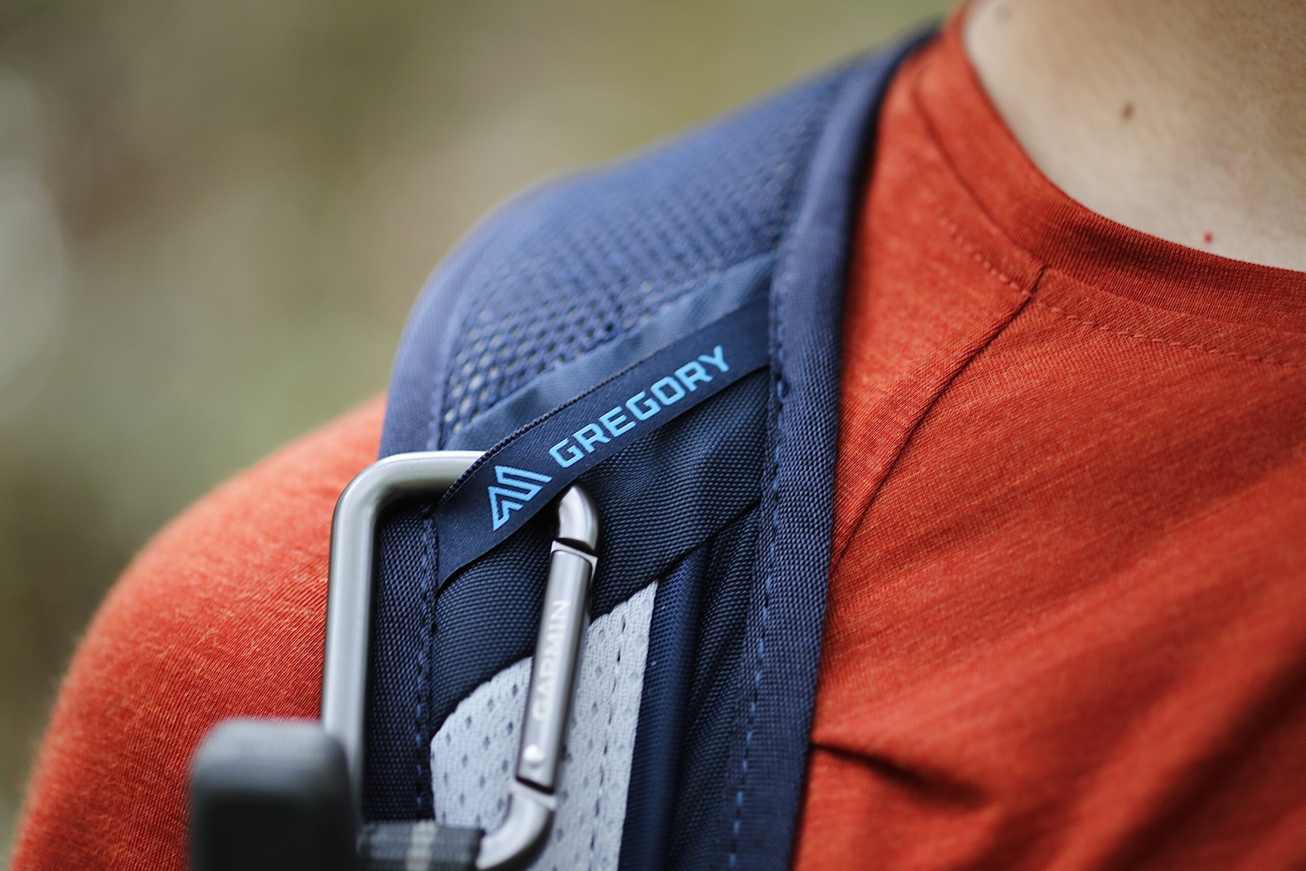 在挑選背包時其實我滿在意肩帶跟包體連結處的紮實度,Gregory 20L NANO 多功能背包是整片連接的,而不是只有兩個織帶連接在包體上,整體更為堅固耐用。而且在扣具與拉鍊等細節處理上,都不愧對他是國際背包大廠的品質,相當有質感。另外很方便的是他的背袋前方左右個有一個織帶,可以掛快扣在上面,我就可以把 inReach 掛在上面收訊號,不怕放在背包訊號不好。