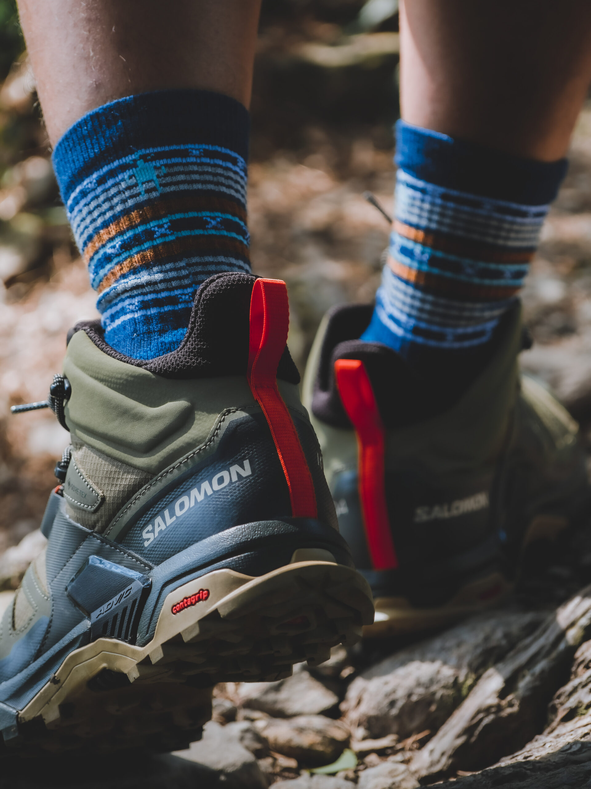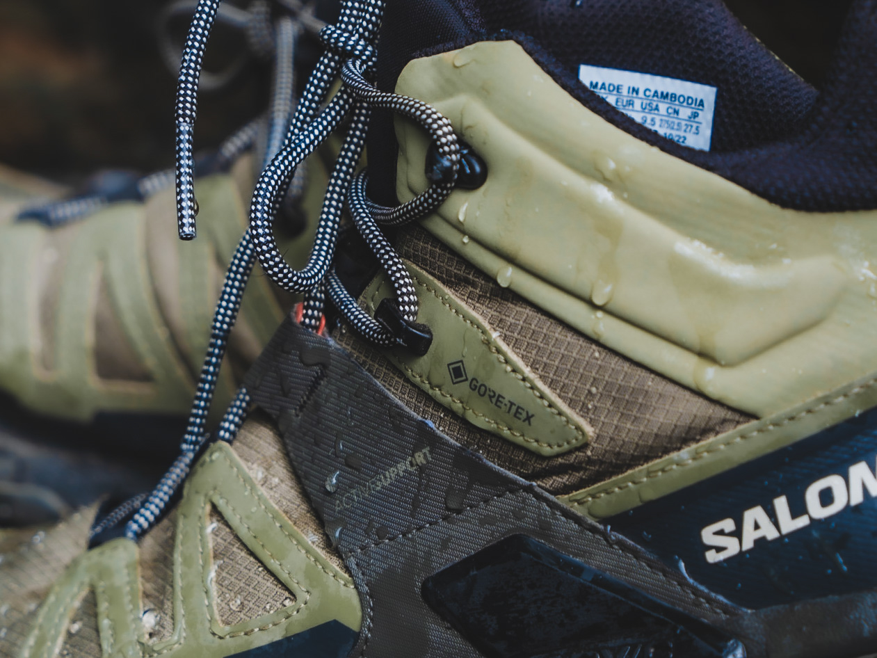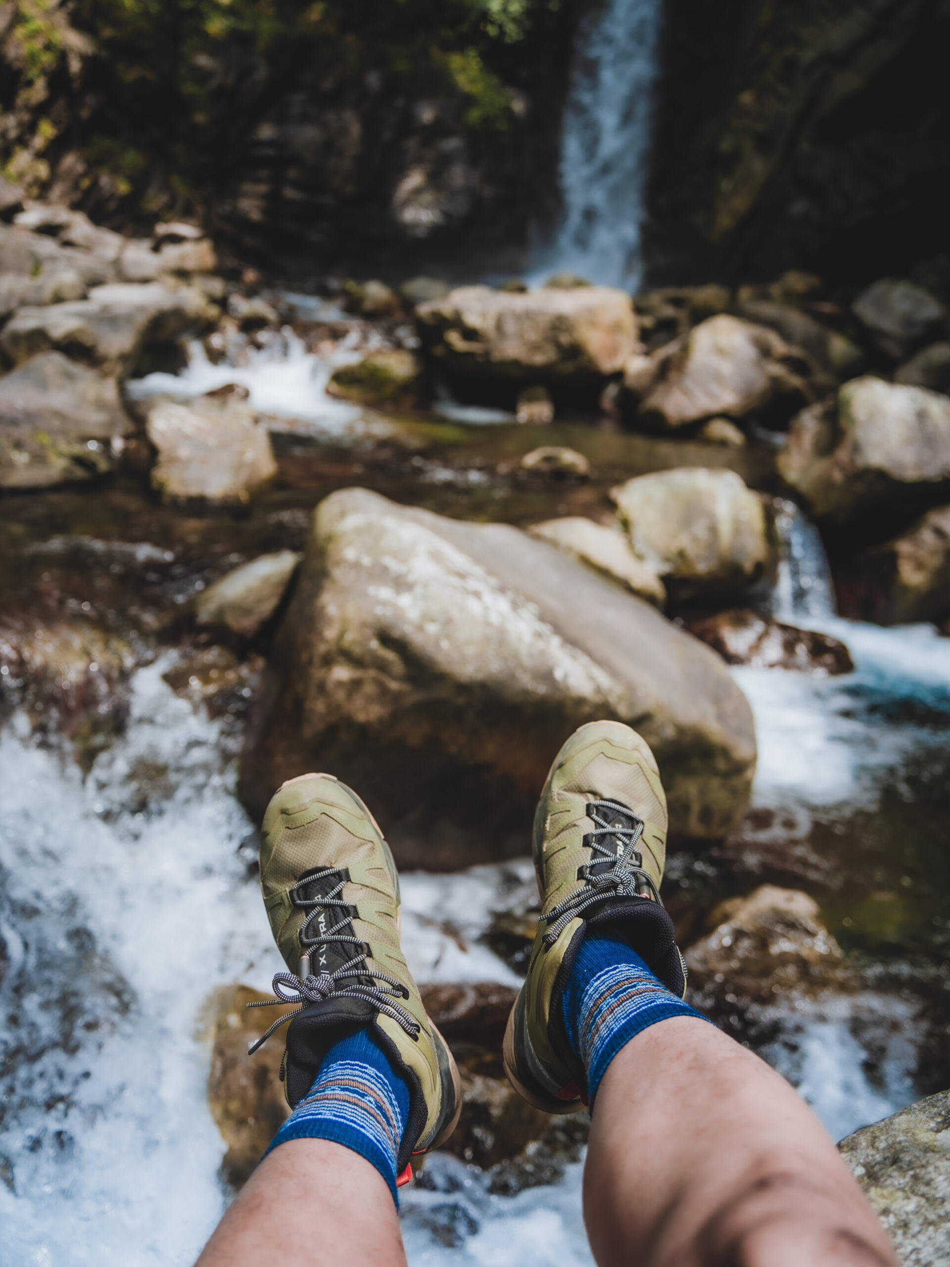 一路上很多路段要靠一些盤根錯節慢慢攀扶而上,這時測試 Salomon X ULTRA 4 它的性能表現均衡,包覆、靈活、抓地、重量、舒適各項都是水準之上,上坡靈活駕馭、下坡安心踏穩,兼具了輕量與防水,有GORE-TEX 防水功能加持,路途中不論經過溪水還是面對下雨天,也都能安心的穿著它繼續行走。