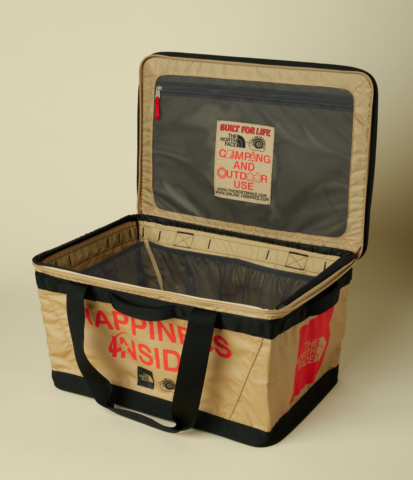 ▲ 限量發行的聯名款露營箱採用耐磨材質搭配金屬支架與多口袋設計,輕鬆解決裝備收納、攜帶與支撐等問題。(TNF X OC