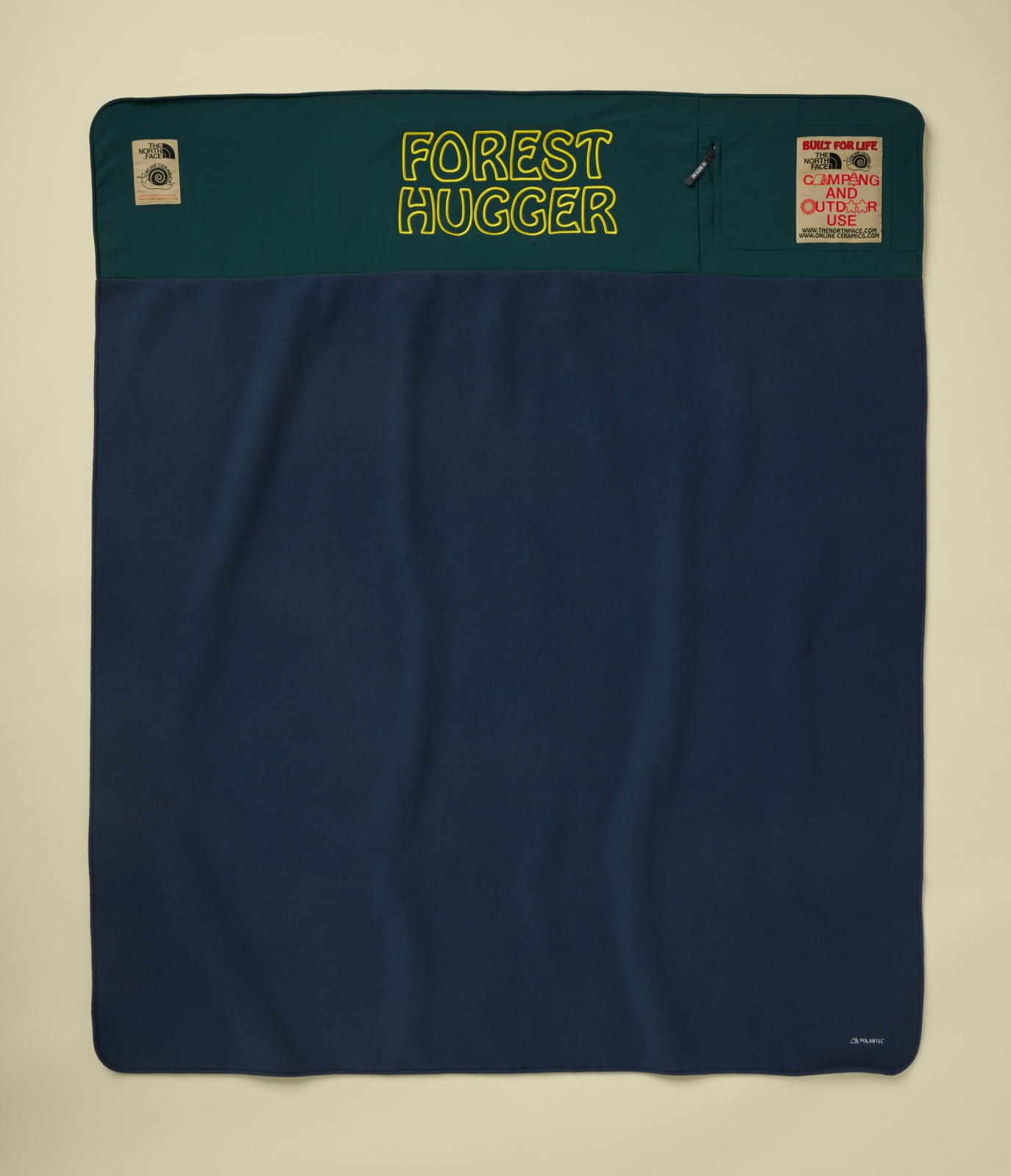 ▲Polartec® 露營毯選用柔軟抓絨與防水尼龍材質混搭製作,兼具易於打包、防水耐用的特性(TNF X OC POLARTEC BLANKET,官方建議售價:TWD 6,380)