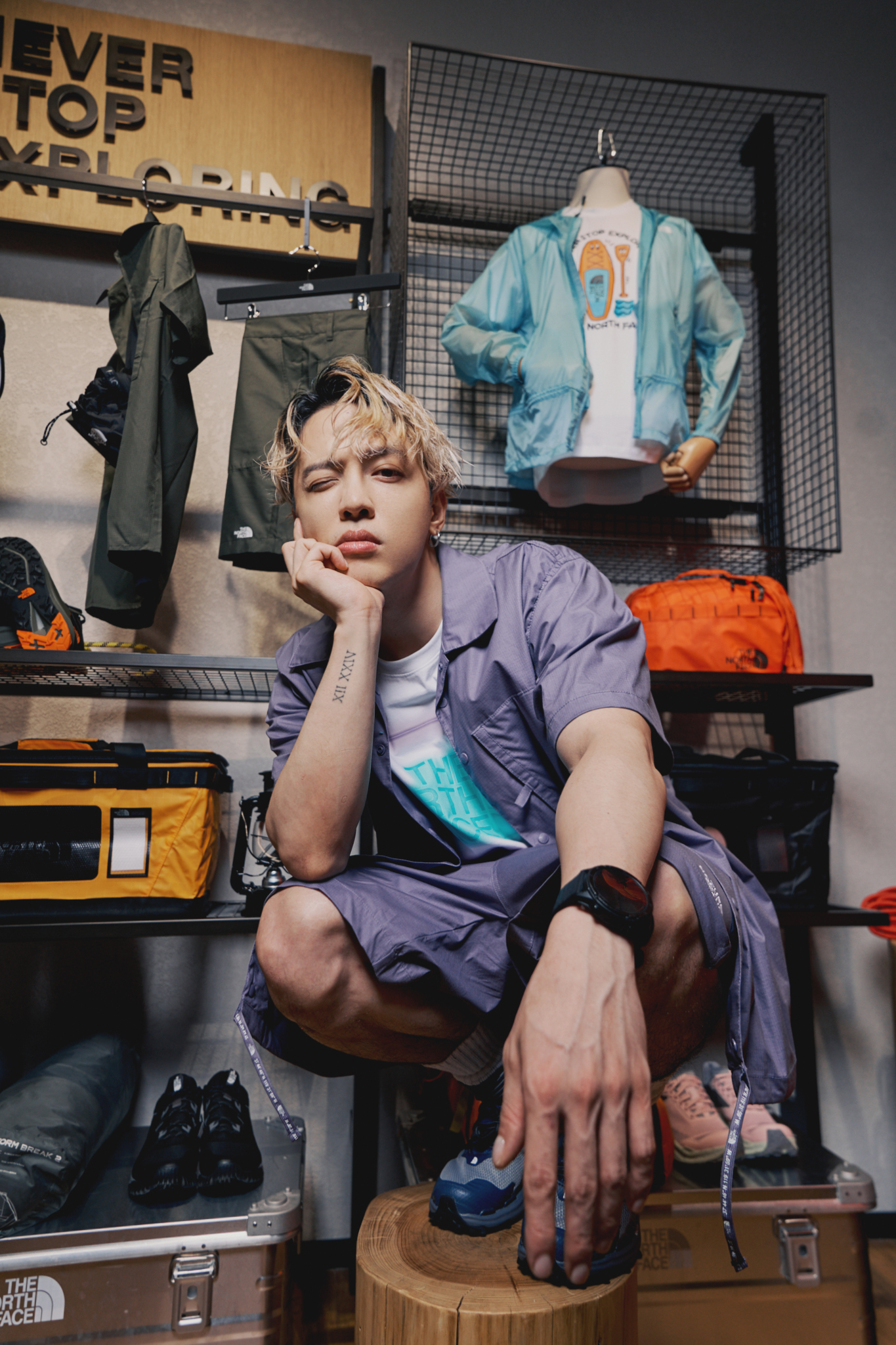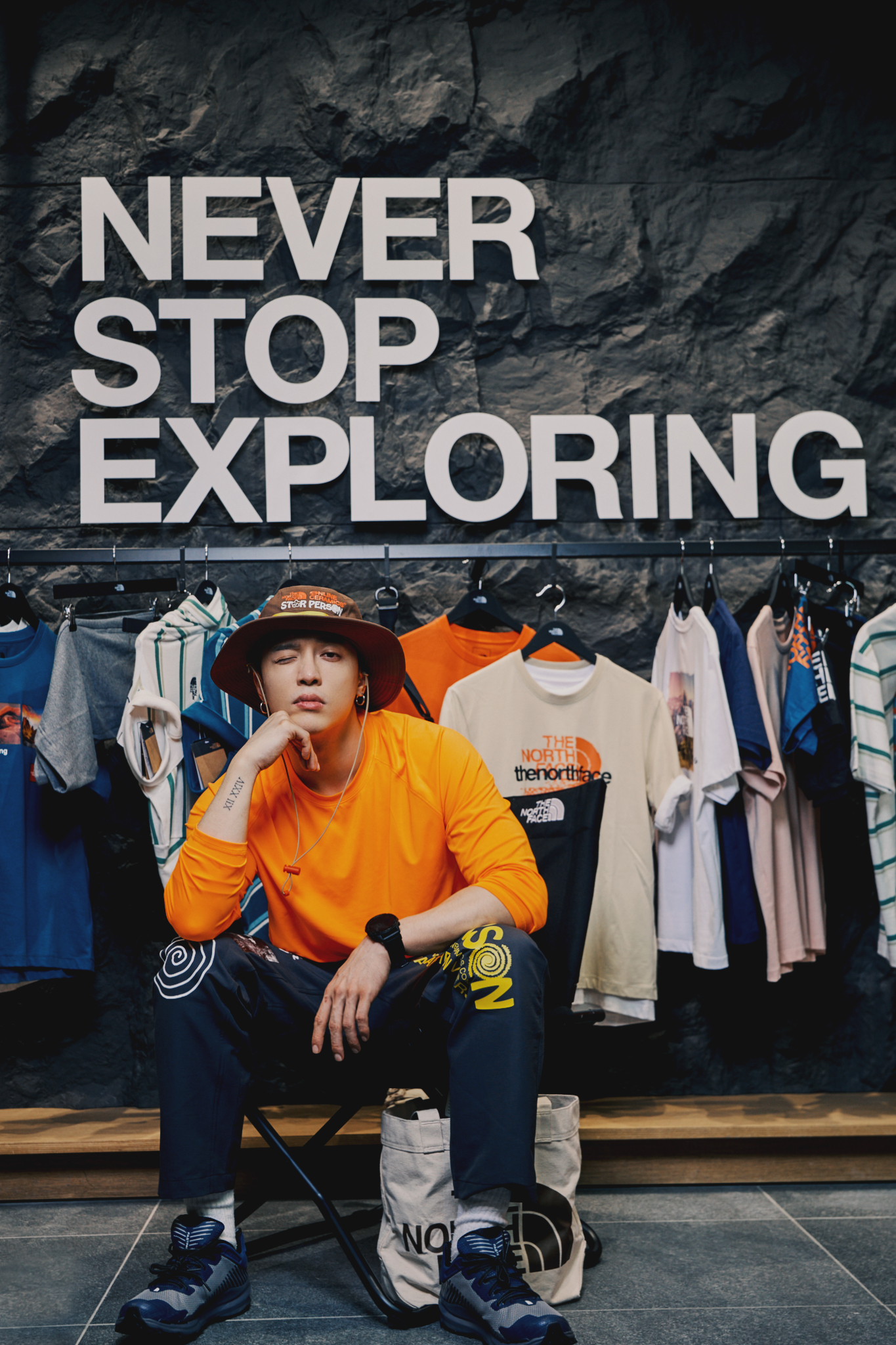 ▲ 身為戶外探索入門者的 J.Sheon 也出席開幕活動,除了穿上最新洛杉磯小眾品牌 Online Ceramics 聯名系列,為現場消費者帶來一場難忘的週五夏夜音樂盛宴!