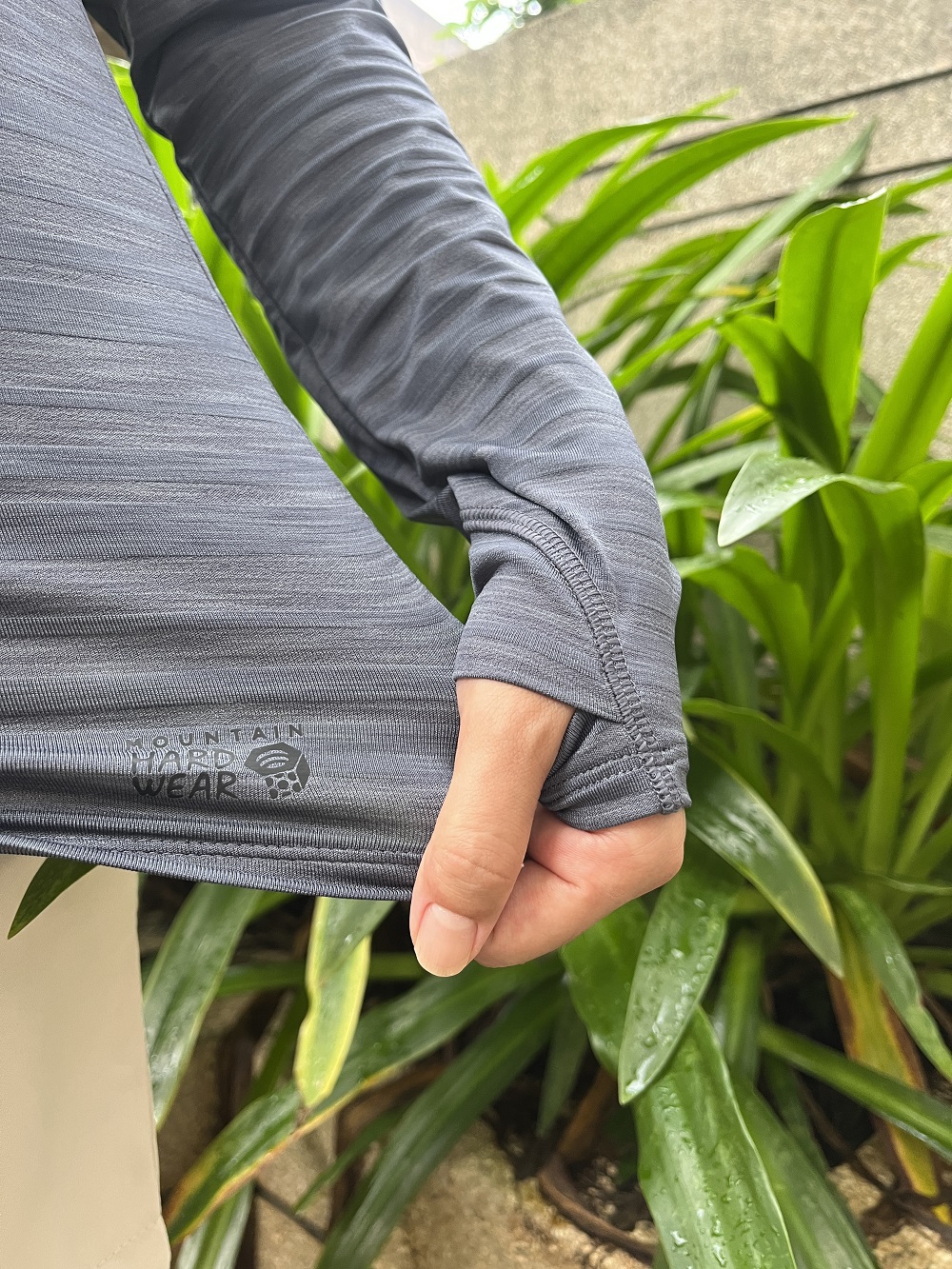 實際試穿下來,除了良好的吸濕排汗效果之外,更令我驚訝的是他的透氣與涼感的穿著體驗。平常夏日登百岳或郊山,因為氣溫較高,習慣穿著短袖上衣或背心,這次長袖排汗衣不但提供防曬效果,體感上也相當舒適不悶熱。另外我也很喜歡袖口的拇指扣設計,可以避免因為動作而滑動,長時間手握登山杖時,能夠保護手背被太陽直射。