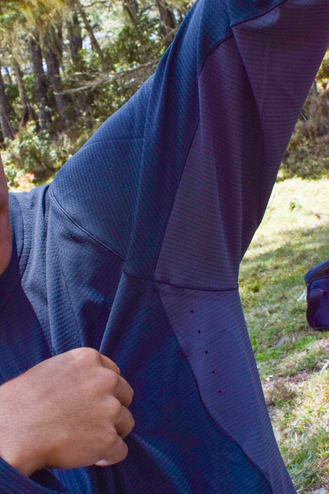 胸前的拉鍊讓我在大量流汗的情況下,依然能夠保持乾爽,領口也做了雙層加厚,在休息時也能讓脖子不容易流失溫度。