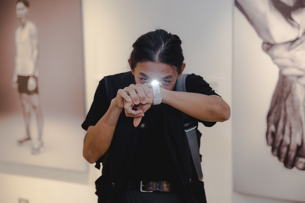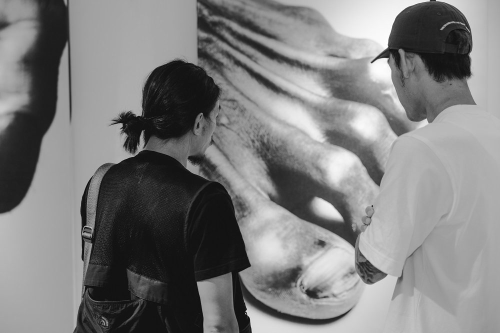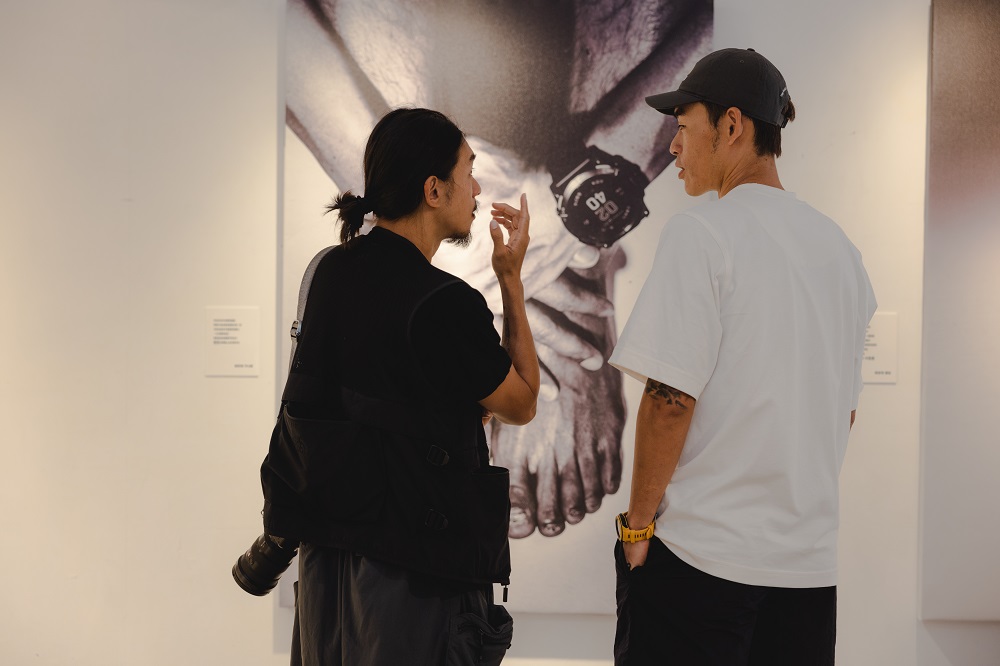 ▲兩人在 Garmin 極地勇者印記快閃攝影展現場交流彼此的觀點,看到張元植這張照片,昇諺看到的第一個想法是爬山的人腳趾都很有力量,而 Fatty 在看說明字卡前,感受到攝影師應該是想要傳達山巒的意象,一張照片,果然不同角度看就有不同觀點。