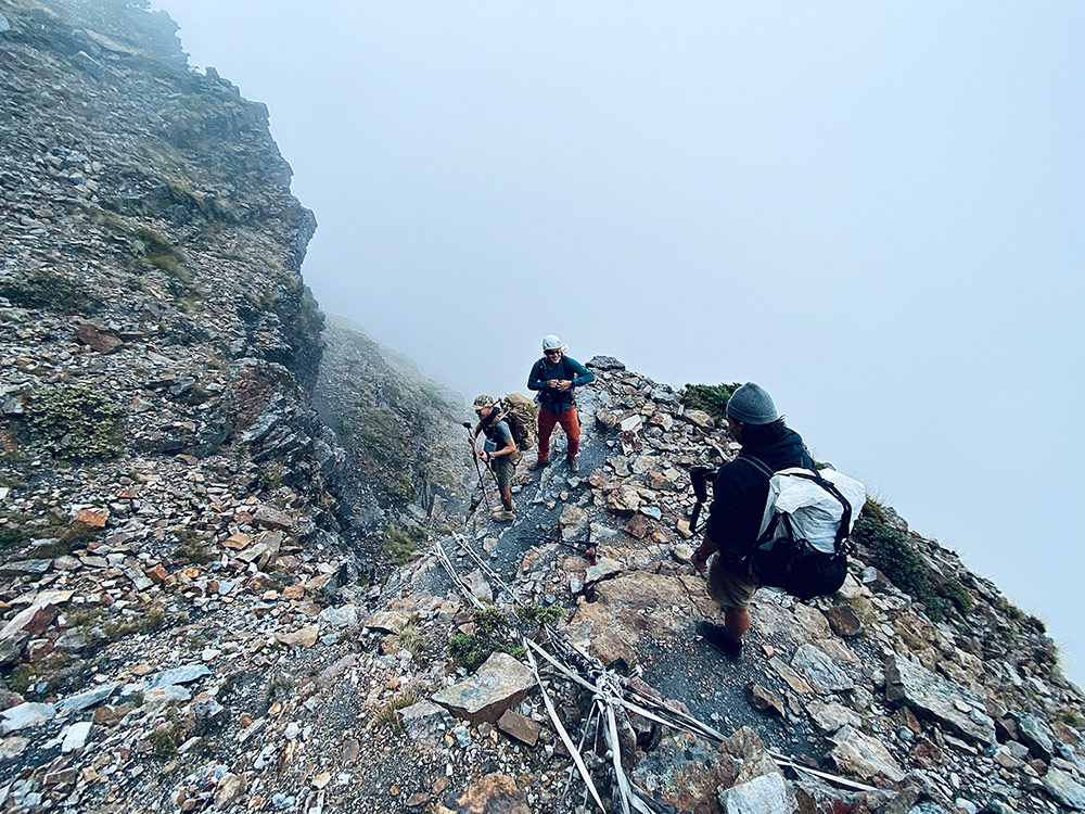 「我們不知道上山會遇到什麼狀況,有可能一個不小心,人就下去了。尤其是我們拍攝第二集城市山人,我們去走聖稜線 O 型,雖然品田斷崖、素密達斷崖都很驚險,但真正恐怖的是後面的穆南劍溝。那是一個深 V 的岩壁,腳底下都是破碎的片岩,每走一步,腳就會滑一下,十分危險。但拍片的人就是這樣,危險也代表這樣的畫面很難得,所以還是邊走邊拍。」