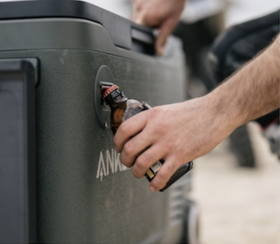 北美能源品牌 Anker,深耕於行動電源裝置產品多時,首次推出便攜式多功能冰箱,除了擁有保冰、冷藏功能外,亦搭載可拆卸式行動電源,除提供冰箱斷電後續航力,更能在需要時為3C產品充電,官方數據表示行動電源擁有能充滿 19 次 iPhone 14 之電量,是個能多元應用的戶外裝備,值得一提的是側桌板及鑲嵌開瓶器的設定,絕對是露營玩家的一大利器。