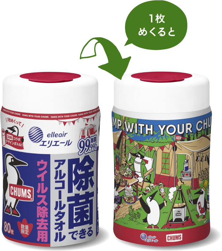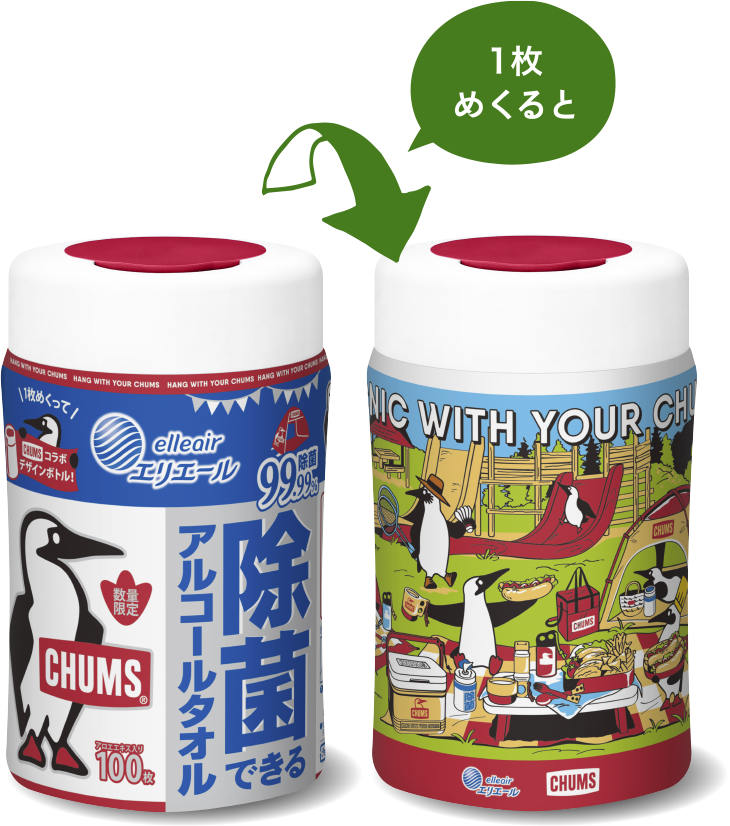 ▲ Elleair x CHAMS (左)80張,露營圖樣消毒酒精濕巾,(右)100張, 野餐圖樣消毒酒精濕巾,官方建議售價:¥627