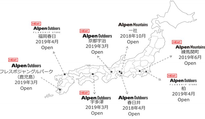▲ Alpen Group 於日本開設的戶外選品分店地圖。