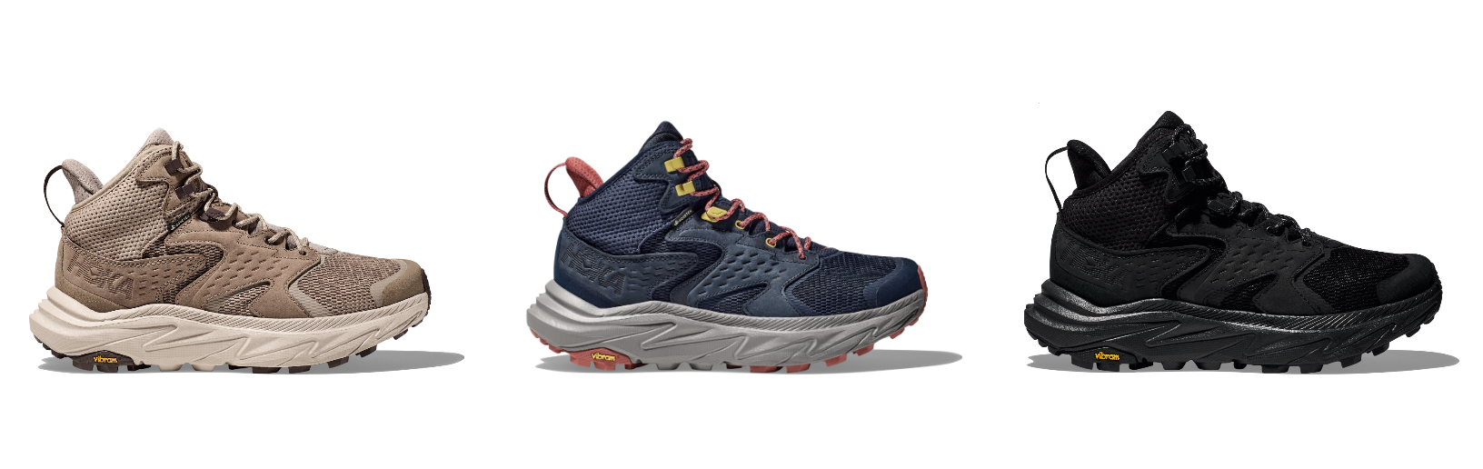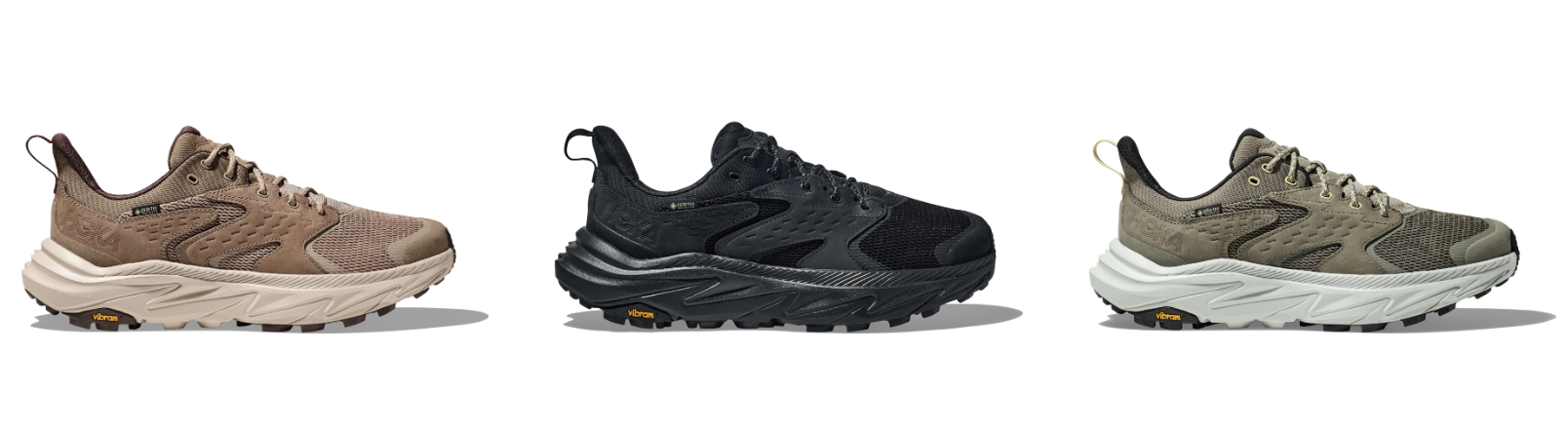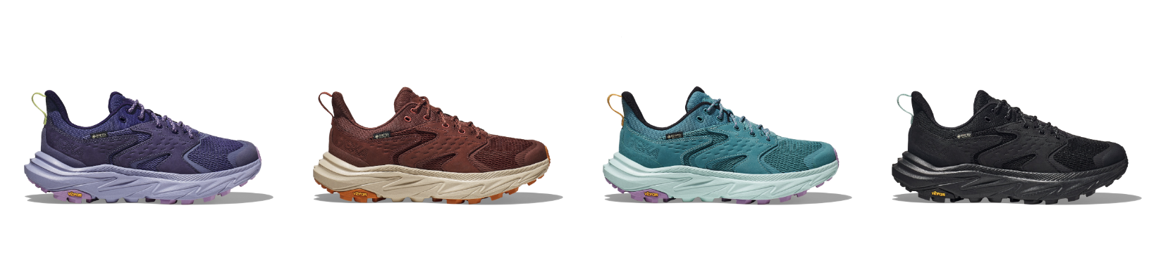 ▲ HOKA Anacapa 2 Low GTX 中筒登山鞋女款,定價 NT$6,480,星空紫、香料棕/淺棕、湖水藍、黑。