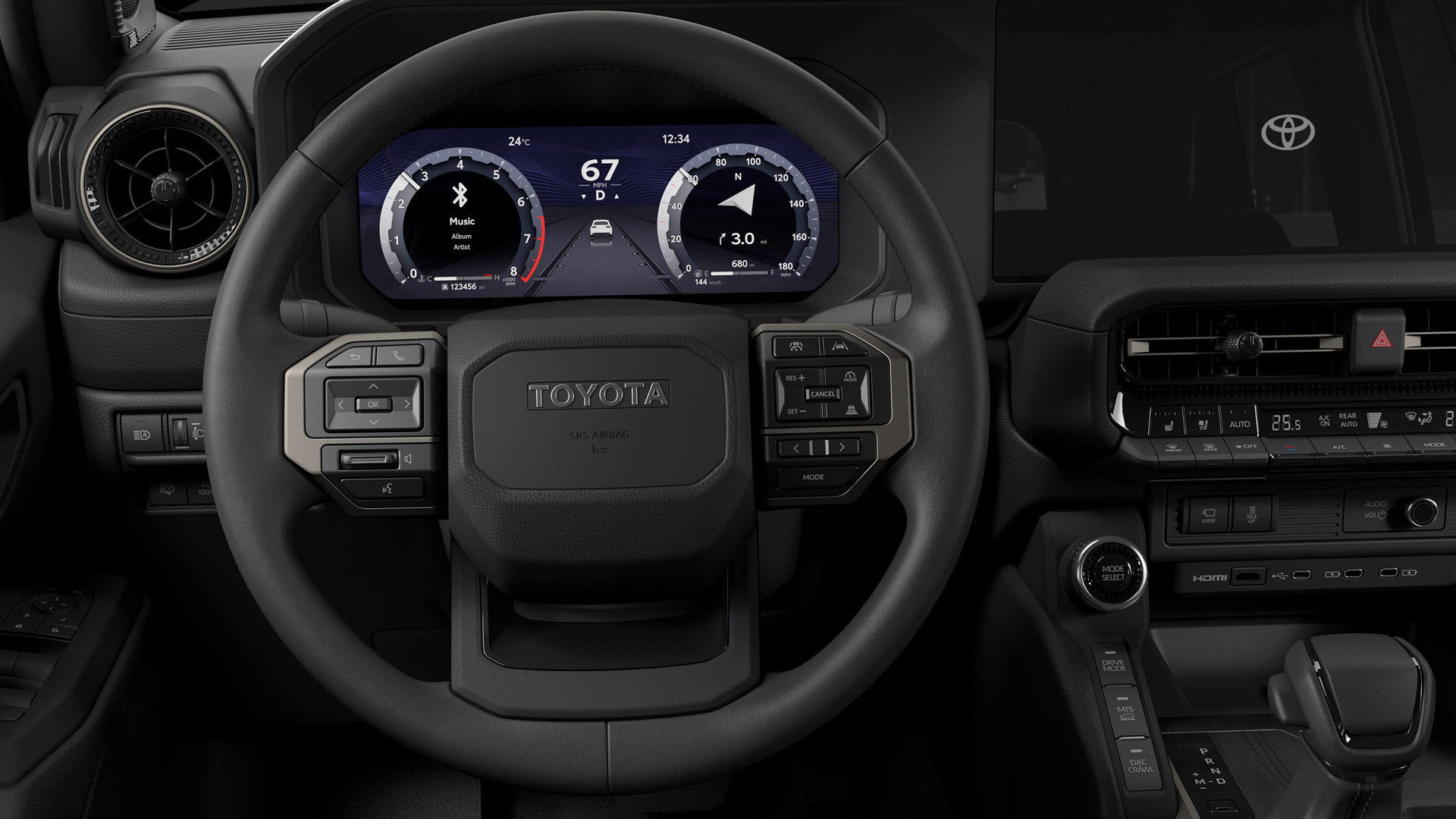 因著升級 GA-F 平台,車子的剛性大幅提升,光是框架剛性就提升50%、整體剛性提升30%,而電動助力轉向 (EPS:Electric power steering )有助於減少越野駕駛時的轉向控制損失,提供更清晰的轉向感覺,提高低速時的機動性,並搭配 LTA 車道循跡輔助系統;而 TOYOTA 也首次使用穩定器斷開機制 (SDM:Stabilizer Disconnect Mechanism),讓開關操作功能可改變前穩定器狀態,在越野時提供駕駛性能和乘坐舒適性,在公路時提供操控穩定性,並通過多地形監視器和多地形選擇的增強功能,提供越野駕駛更安全的行駛體驗。