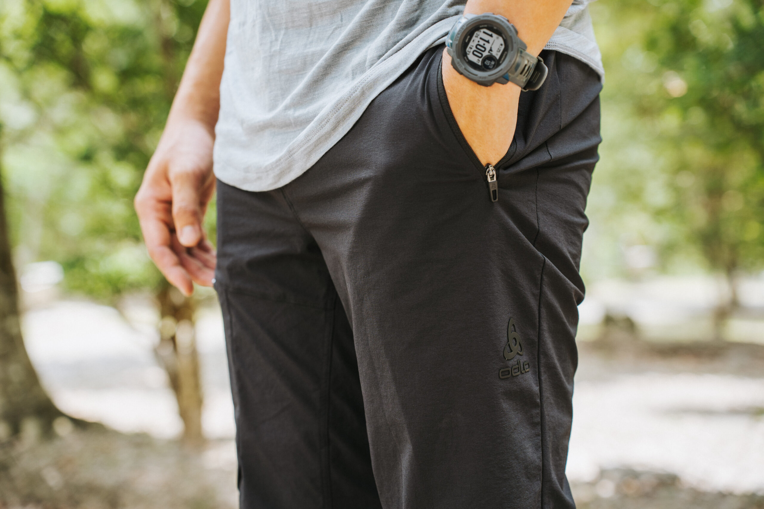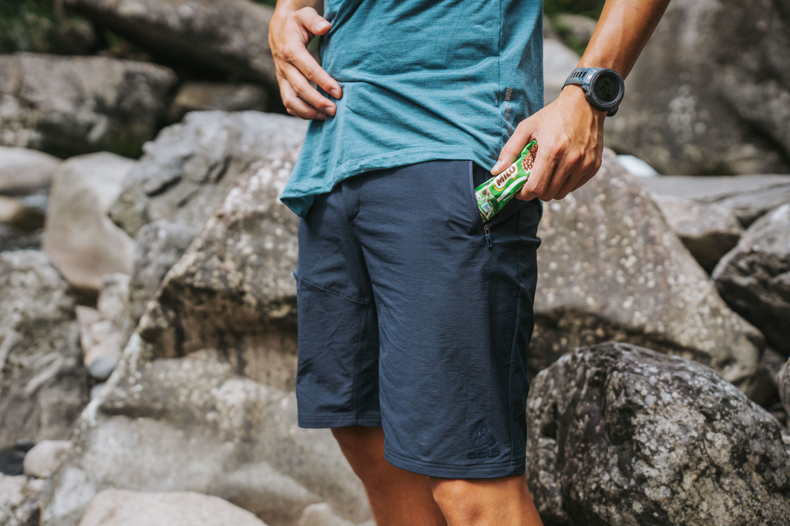 ▲ Odlo ASCENT 彈性短褲的多工口袋,除了能分門別類放置手機、行進糧等物件外,擁有拉鍊的設計也能避免物品遺落。