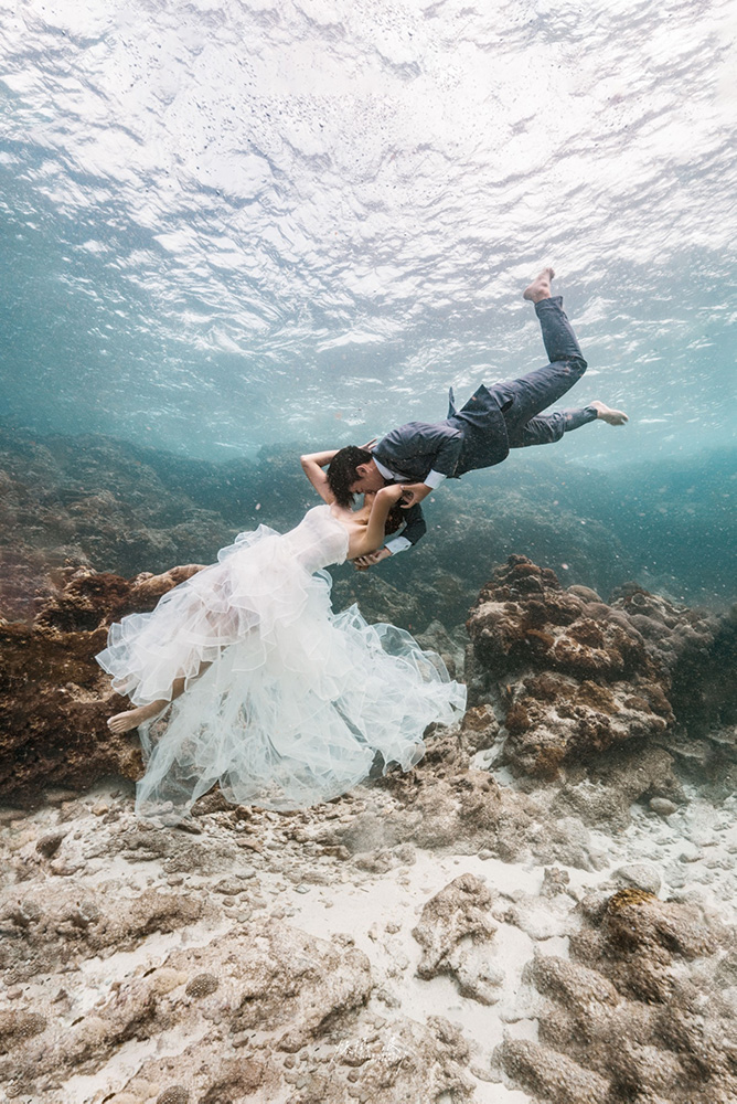 接下來就由阿爆跟大家分享,拍攝水下婚紗照要注意什麼,以及如何拍出美艷動人、如夢似幻的水下婚紗照吧!