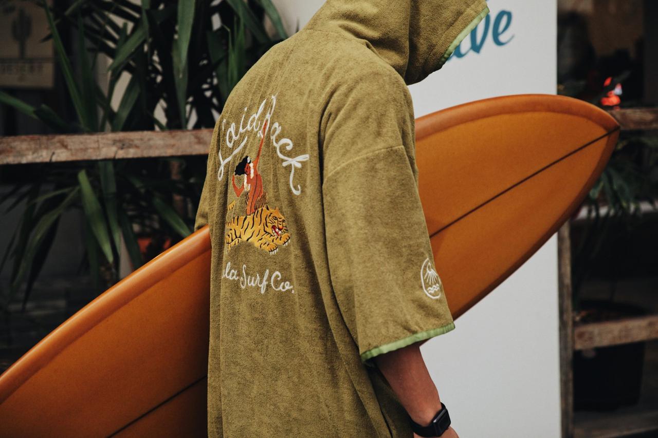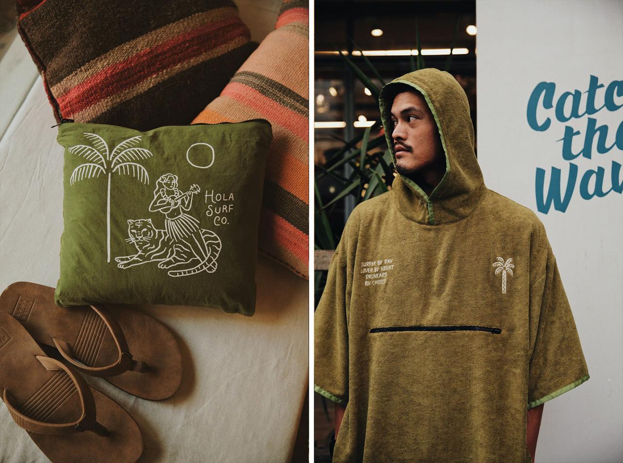 整體的設計也不馬虎,從抱枕上的圖案到毛巾衣背後的刺繡,絕對是男性浪友的衝浪必備單品。