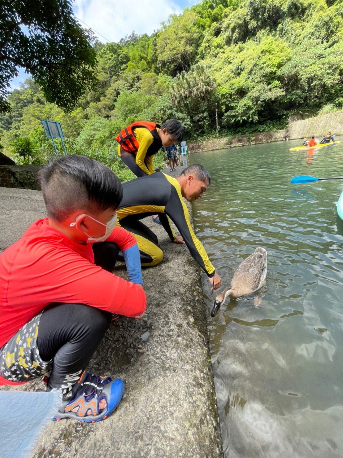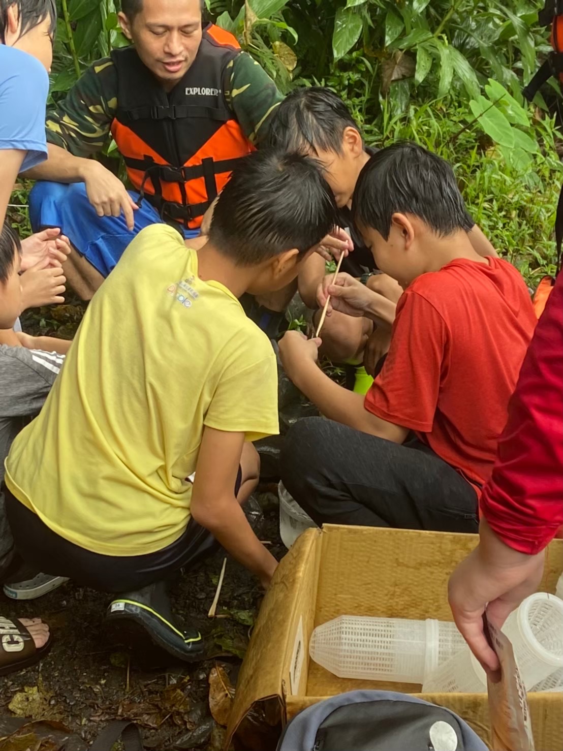 「有次學期末的最後一節玩水課,突然下起了暴雨,但澆不熄孩子的熱情。」李英彥接著說:「此時你會跟孩子們說,下暴雨不能出去?還是帶著他們繼續課程?」他選擇了後者,繼續帶領孩子們探索,站在安全的地方,和孩子們討論,判斷何處是河流、哪裡可以安全玩耍,接著反問孩子們會害怕嗎?為什麼會?你看到和感受到了什麼?