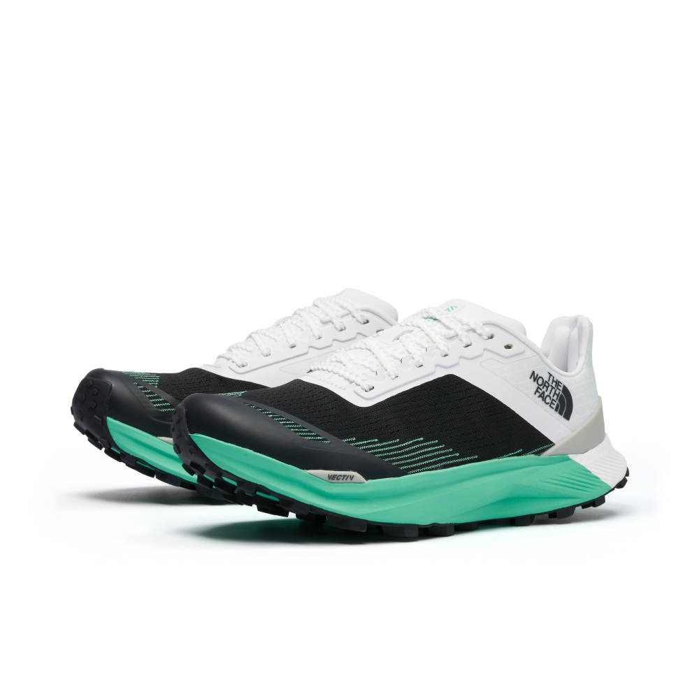 ▲左:白色 VECTIV 中底抓地舒適耐穿野跑鞋 NT$5,880 / 中:黑綠拼接 VECTIV 中底抓地舒適耐穿野跑鞋 NT7,380 / 右:綠色 VECTIV 碳纖維中底抓地野跑鞋 NT$9,380