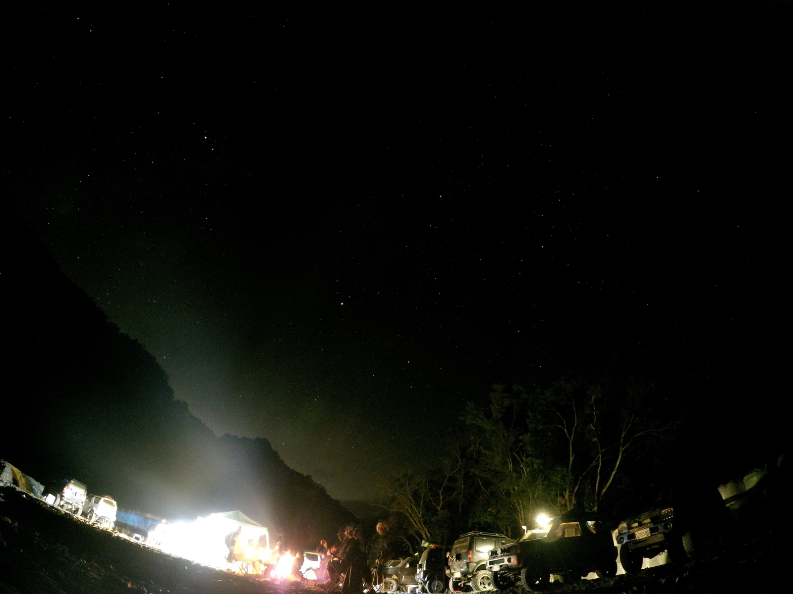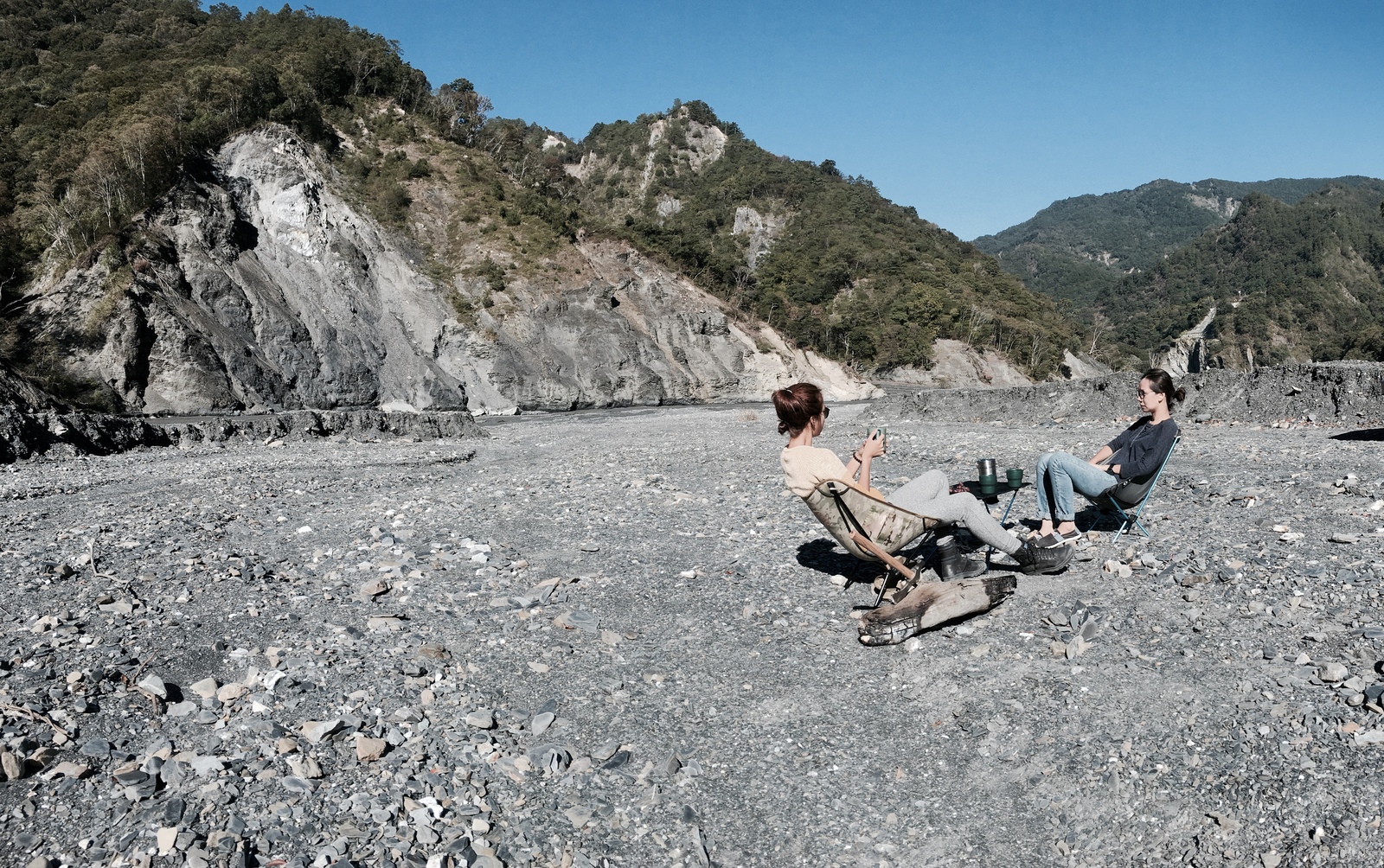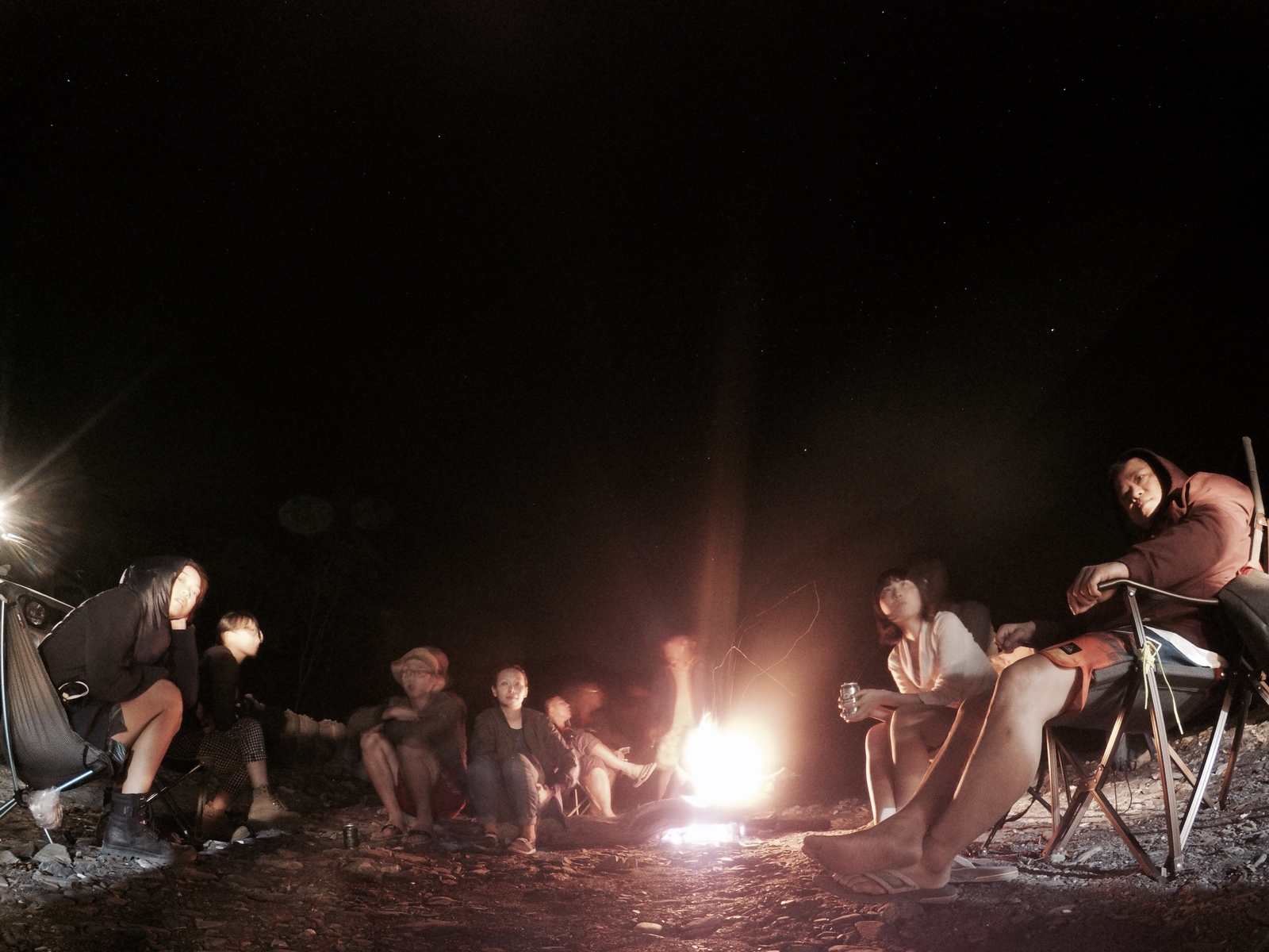 夜晚山谷裡溫度降低,空氣顯得更冷冽,收集漂流木升起營火,大夥圍著火光喝茶取暖聊天。