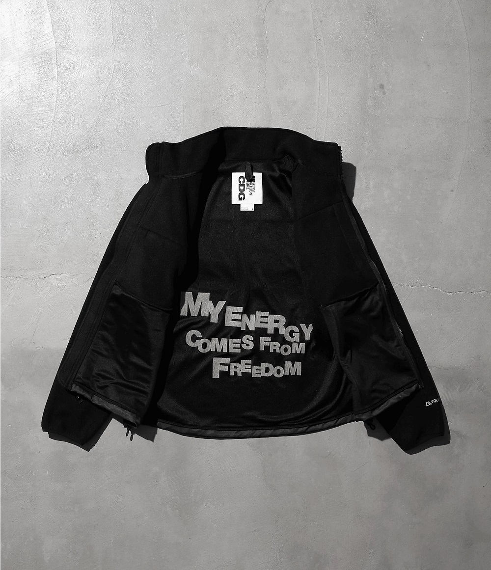 這次要介紹的 The North Face 新款,是與日本潮流品牌 COMME des GARÇONS 的人氣副線品牌 CDG 推出的聯名系列,包含外套、背心和配件等多款品項。本次聯名系列以以全黑色為主調,CDG 品牌標語「Wear Your Freedom」和「My Energy Comes from Freedom」分別皆印在兩款外套內部,外觀上則印有 CDG 和 The North Face 的LOGO,大小適中的設計也較顯低調質感。