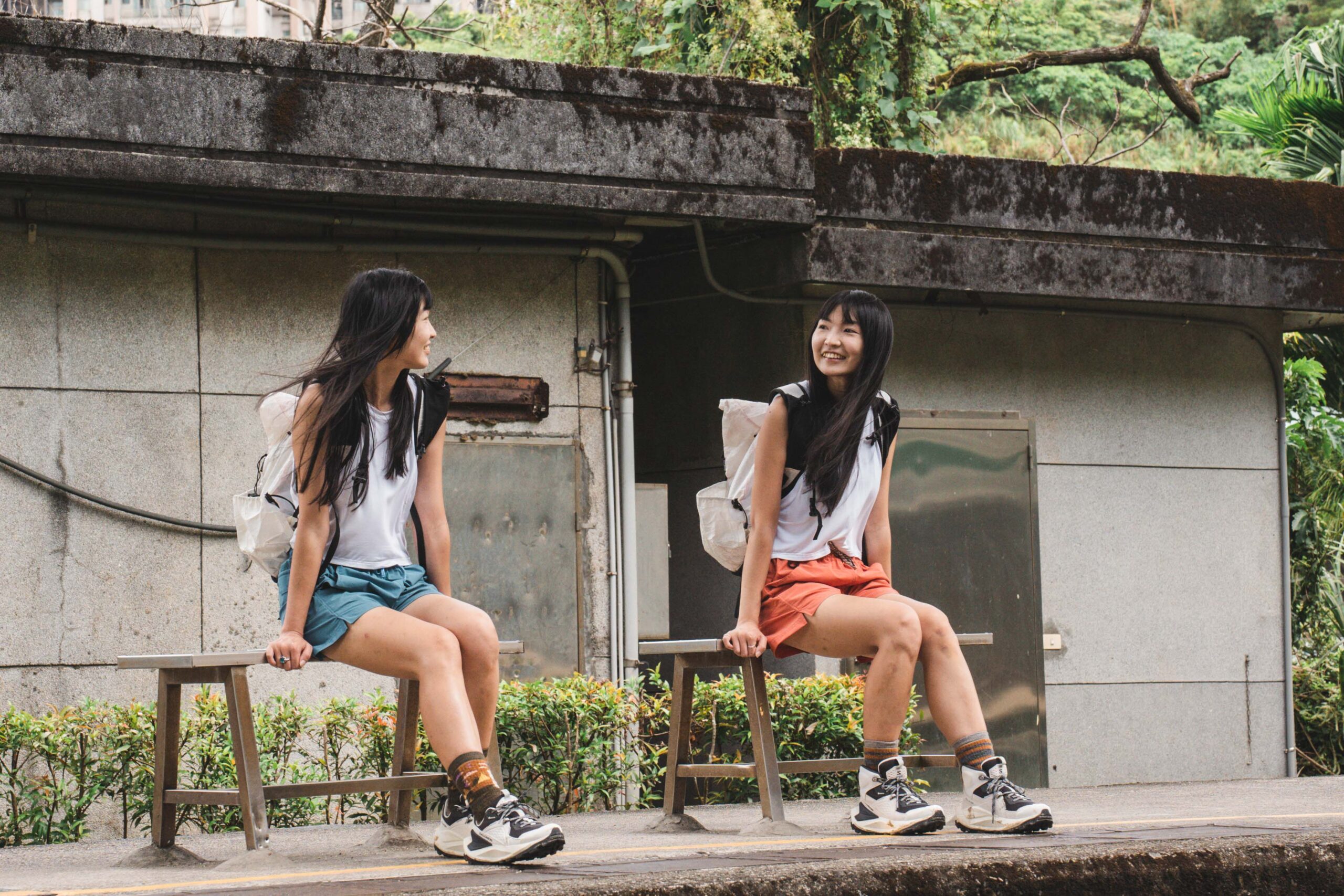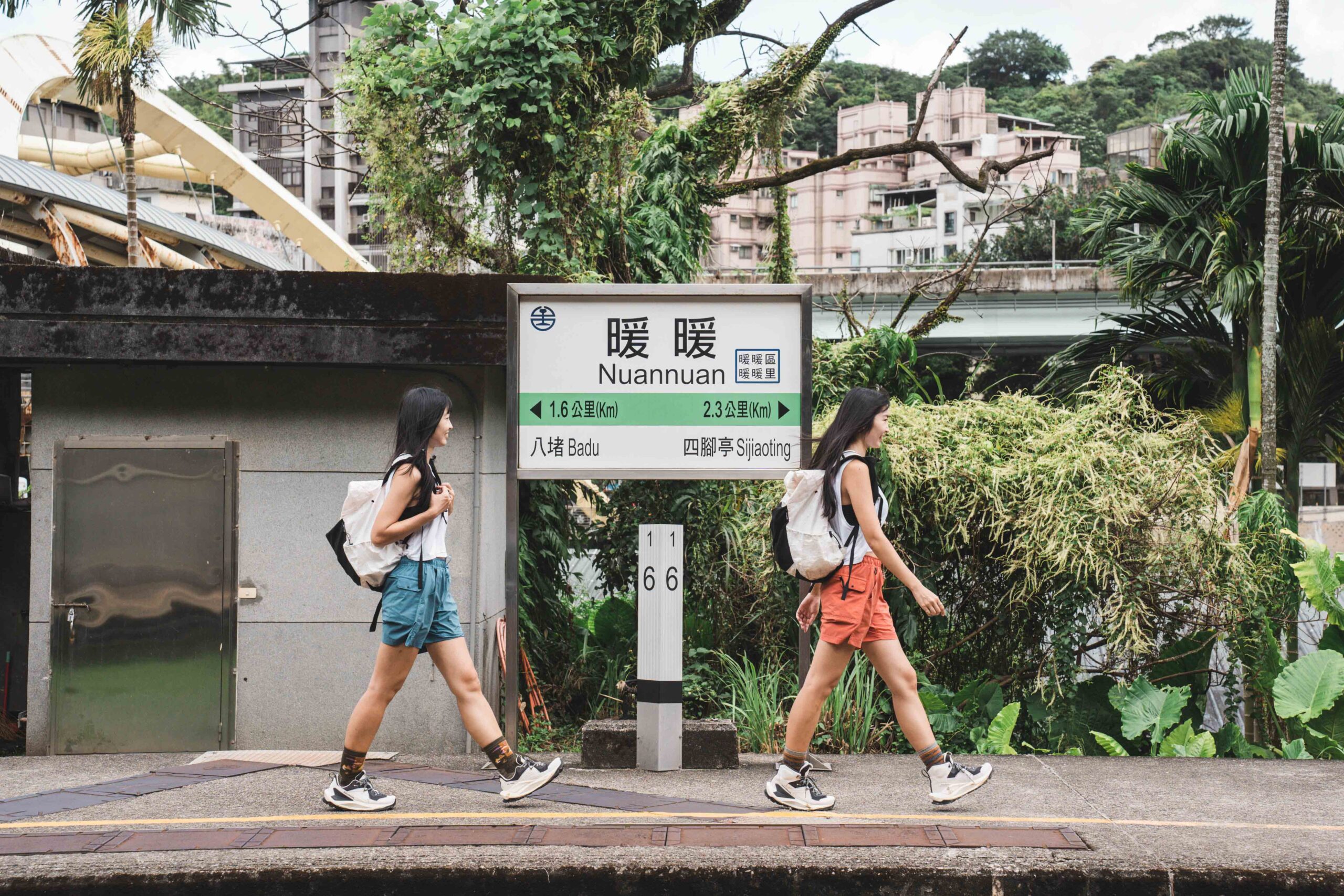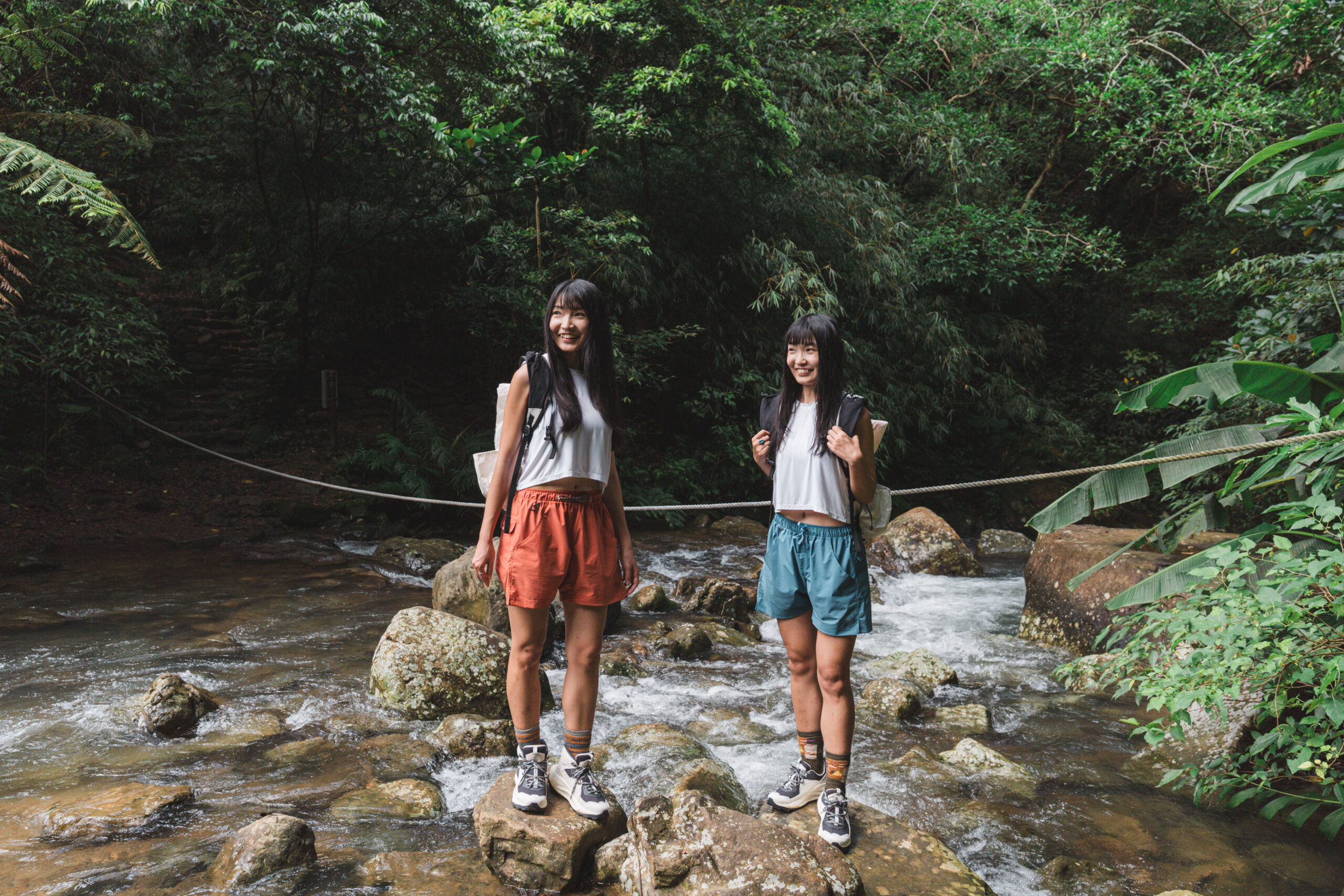 初識這天正逢海葵颱風來襲前夕,我們相約在基隆暖暖車站,準備徒步走往有台灣朝聖之路稱號的淡蘭古道中路起點暖東峽谷,開始今日健行工事,陽光映照在雙胞胎女孩 Lili & Vivi 笑顏,顯得格外耀眼,讓人幾乎忘卻這裡是基隆,我們一邊走在暖暖街上,Vivi 率先打破沉默說:「我們讀政大的時候,因為校區在山上,養成了我們每天走路爬山的習慣。」Lili 則補充道:「我們讀研究所時,到歐洲交換學生,開始愛上徒步在城市探索的自在。」熱愛背包旅行的她們,到訪超過 50 個國家,除了在城與城之間的交通外,幾乎都是靠自己的雙腳徒步前行,一方面將自己的步調放慢,能好好爬梳各地的人文歷史、風土民情,一方面就僅只是熱愛這樣的生活方式,如此心之所向罷了。