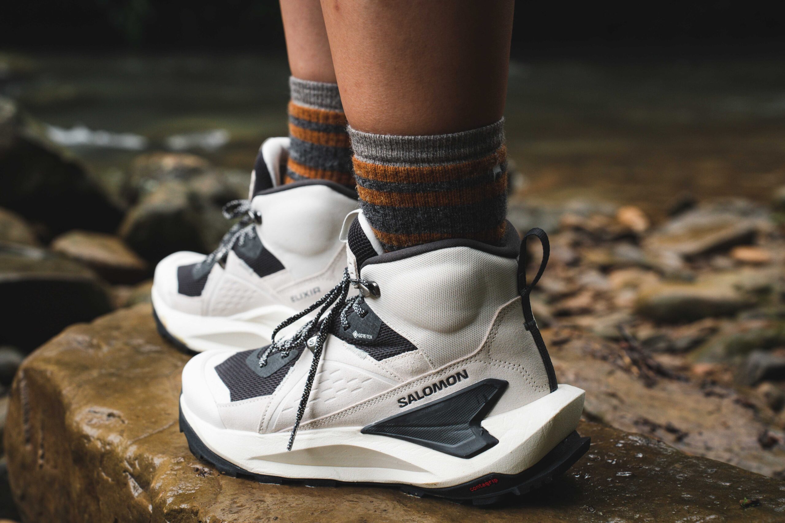 ▲ Salomon ELIXIR Goretex 登山健行鞋,搭載 Gore-Tex 防水科技,保持登山健行者全天候足部乾爽。