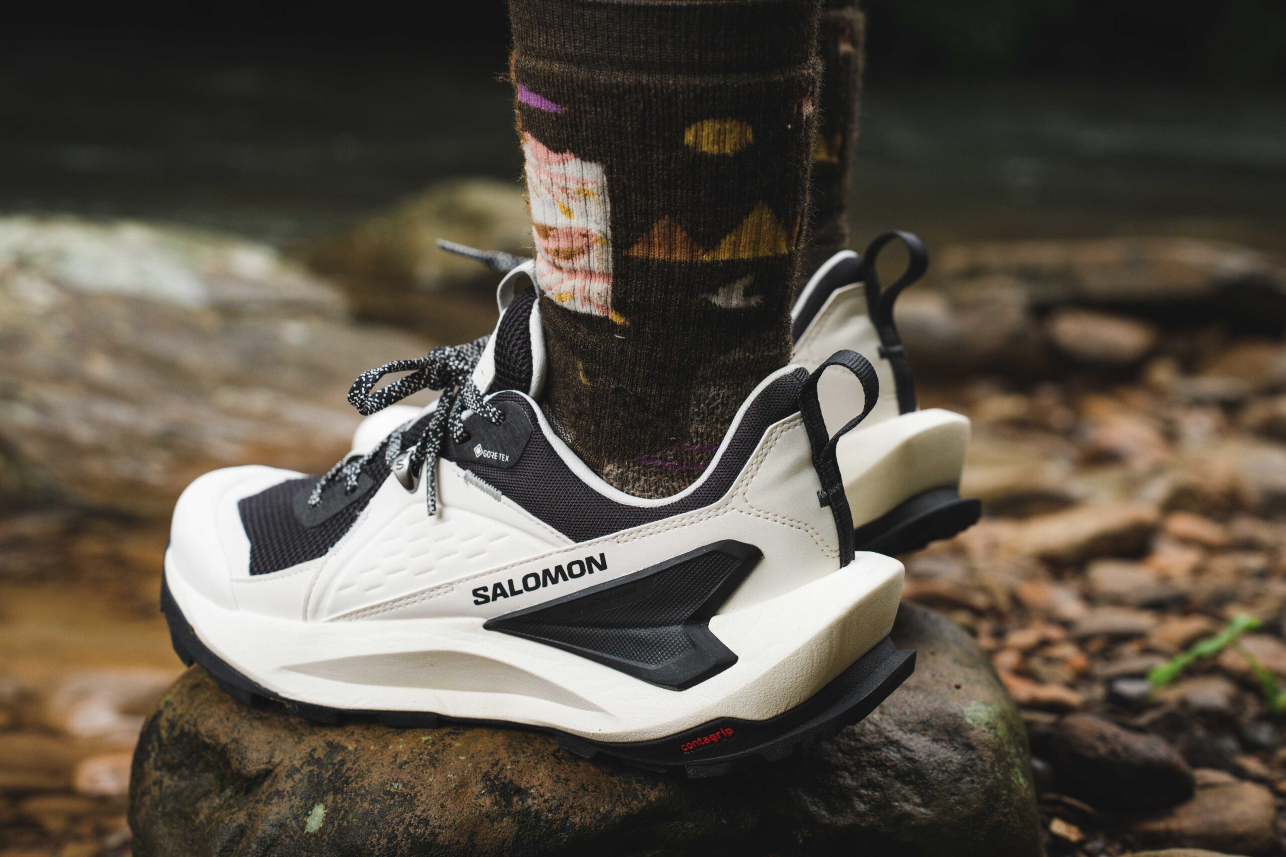 面對戶外健行驟變的天氣,就更需要一雙全方位應用的健行鞋履,Salomon ELIXIR Goretex 登山健行鞋搭載 Gore-Tex 防水科技,則能幫助登山健行者對抗嚴峻氣候,避免雨水滲透弄濕足部,保持全天候乾爽,而汗水也能經由薄膜蒸散出去,避免濕溽難耐的情況發生。