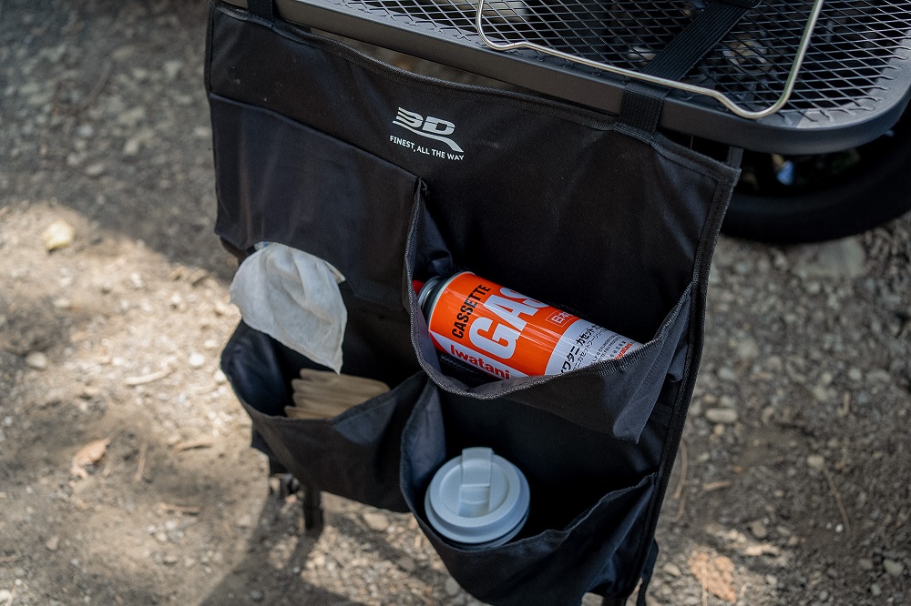 另外可加購加掛式收納架,更完善的使用搭配,負重力平均分散於輪胎餐盤上,可承載重物不擔心重心不穩,多口袋設計可輕鬆將瓶罐、紙巾等完美隱藏。材質為防潑水材質表布,遇下雨或髒污,可水洗、快乾,長保如新。整體重量僅0.5kg,攜帶出門安裝完全零負擔。