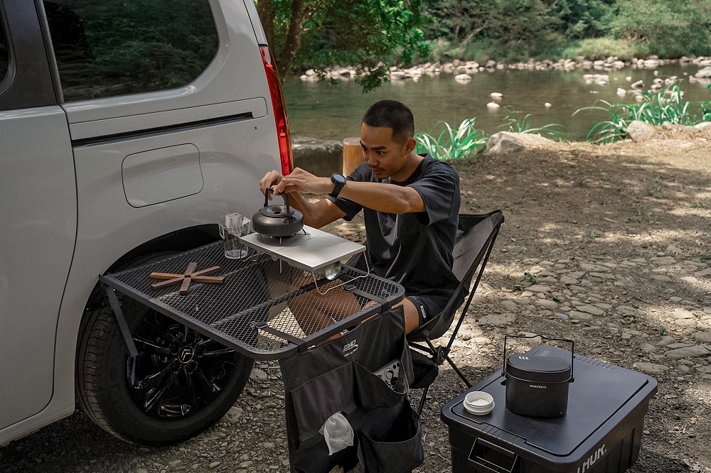 「一杯咖啡,一台筆電,一張隨行桌,你也可以輕鬆變換工作場景,映入眼前的不再是一堆數據文字,而是那片海。」專為戶外露營而生的 3D MATS,有著許多讓車露體驗更為加分的配件,這款輪胎便利桌架可以一分鐘以內完成架設,全程無需繁瑣工具、無需費時安裝,選用優質碳鋼,硬度更高、耐用度更持久,桌面也不易產生變形等問題。桌面簍空網格設計,可將物件懸掛於側外,平檯也可維持透氣乾爽。橡膠防滑底部,高耐磨底部材質有效減少摩擦,並防止桌子滑移亦增加與地面間緩衝和絕佳降噪。