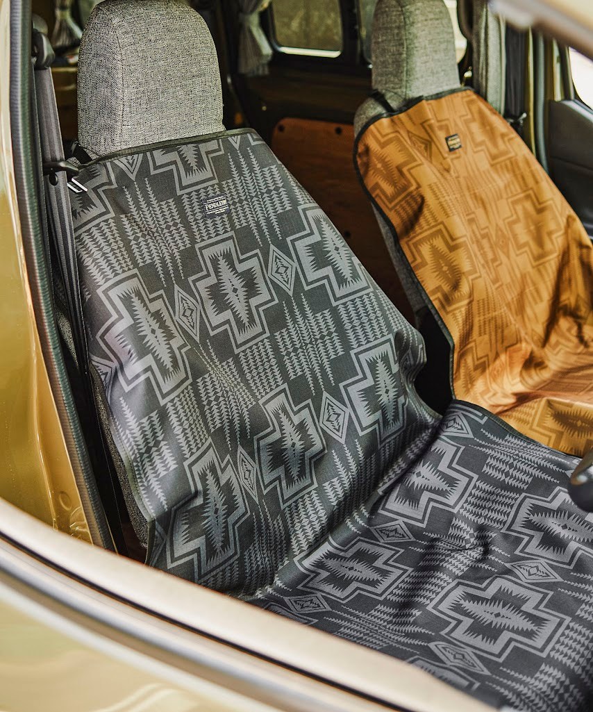 日本生活品牌 GORDON MILLER,向來以車庫為產品設計靈感來源,這款與 PENDLETON 聯名的多功能座椅套,除了有 PENDLETON 經典的圖騰風格,在材質上經過 PVC 處理的防水座椅可以防止泥漬、水滴等休閒活動中的污垢。此外,它也能保護汽車座椅免受寵物的毛髮和爪子等損傷。