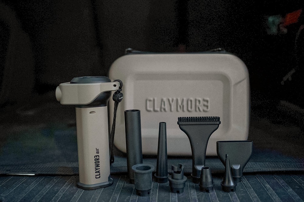 質感絕佳、好攜帶的 Claymore Air 空氣幫浦,具有三段強力氣流,附八款不同氣嘴提供各種需求使用。三段強力氣流,可充氣、抽氣、升營火、若是有車露需求的車主,可以隨時為床墊充氣。強力的氣流也可以清潔戶外裝備,或是將車上的落塵做基礎的清潔。