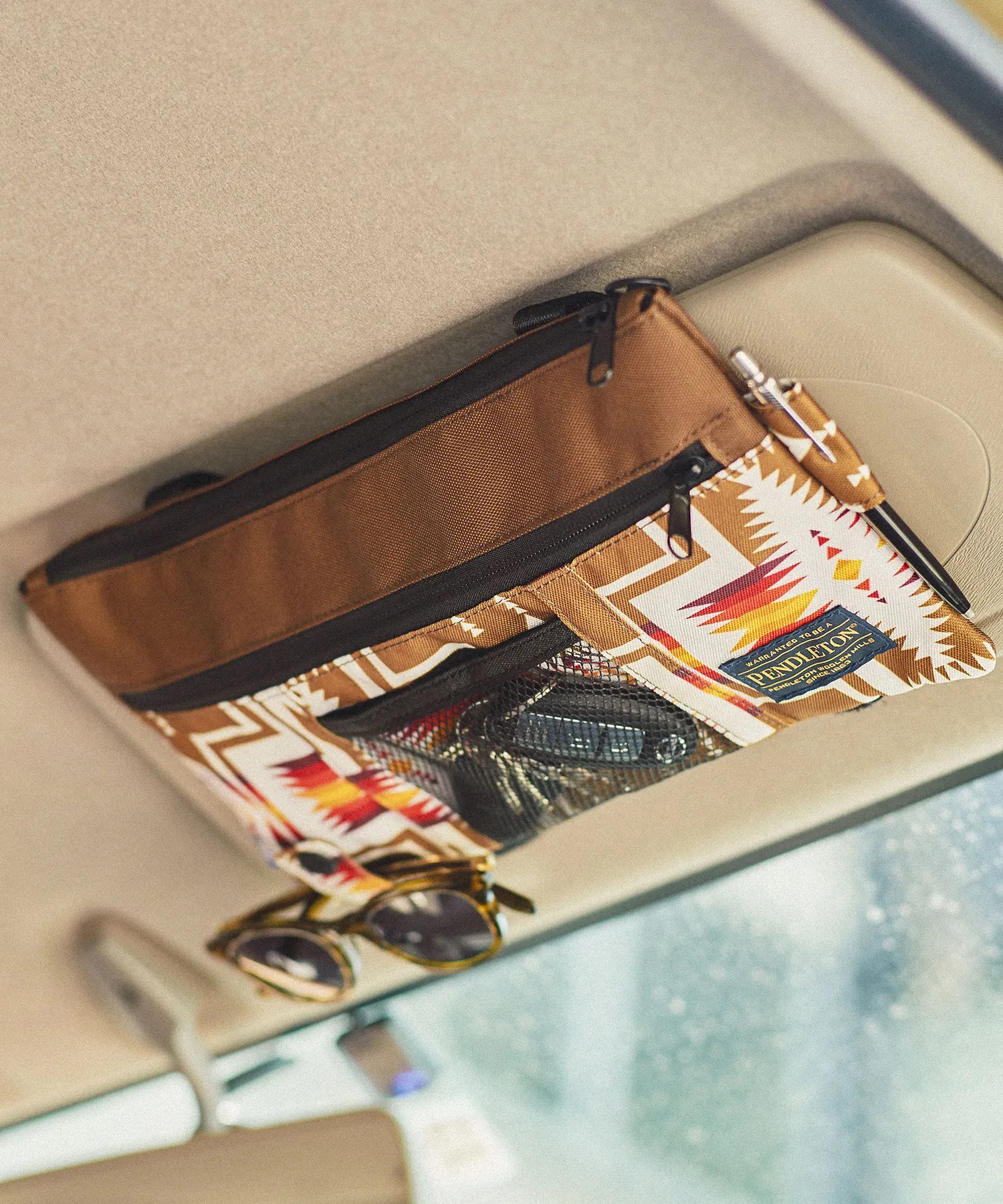 延續上述聯名系列,此款多功能收納袋可放置手機、錢包等小物品。具有兩個拉鍊的口袋、網狀口袋、太陽眼鏡掛環,體積小但能提供豐富的收納空間,PENDLETON 的圖案也能夠成為風格有型的亮點,能為車內營造氛圍。