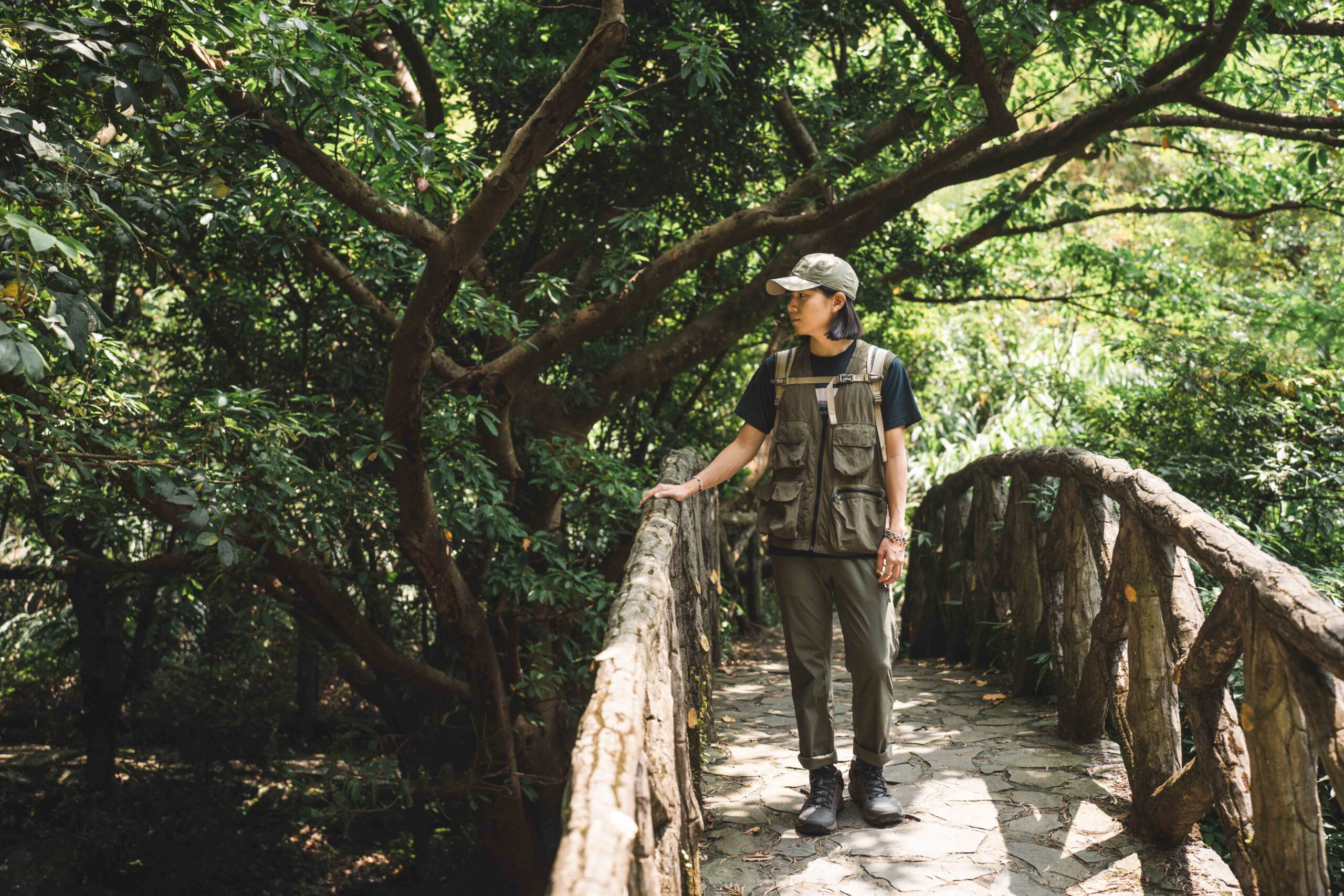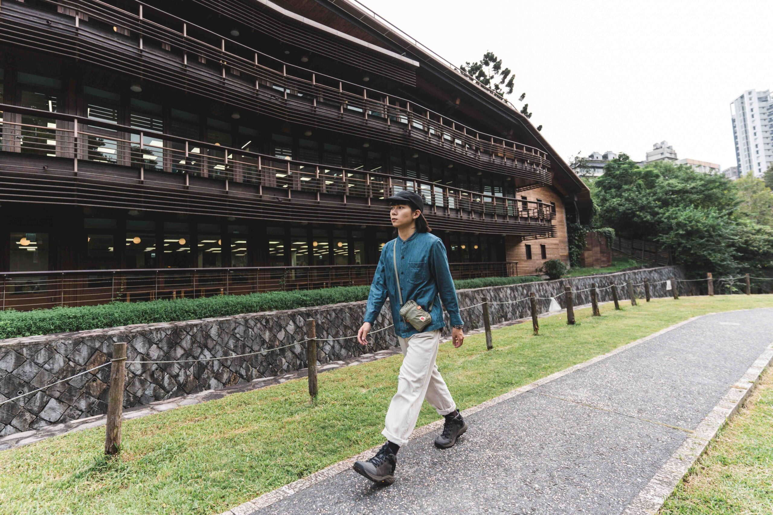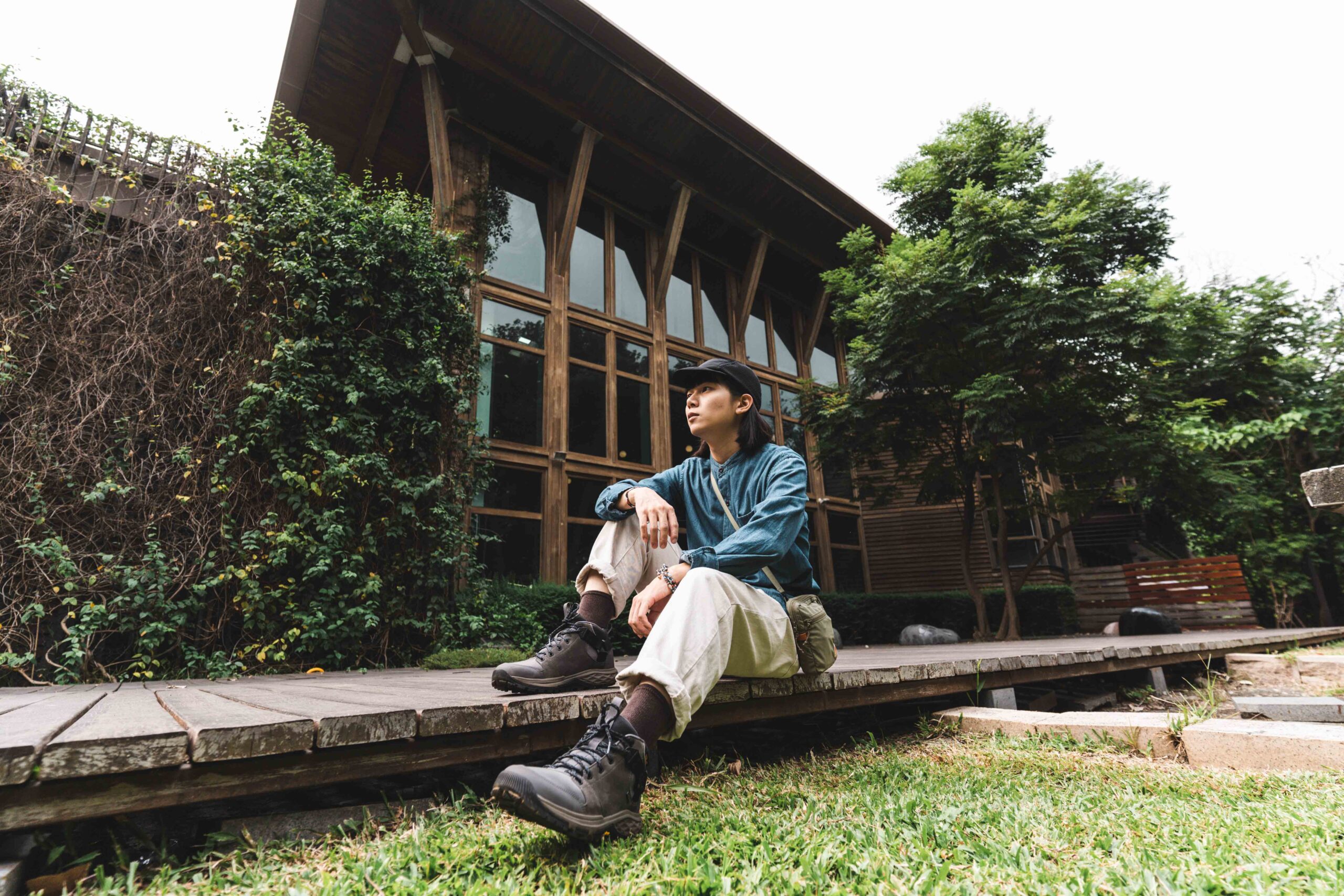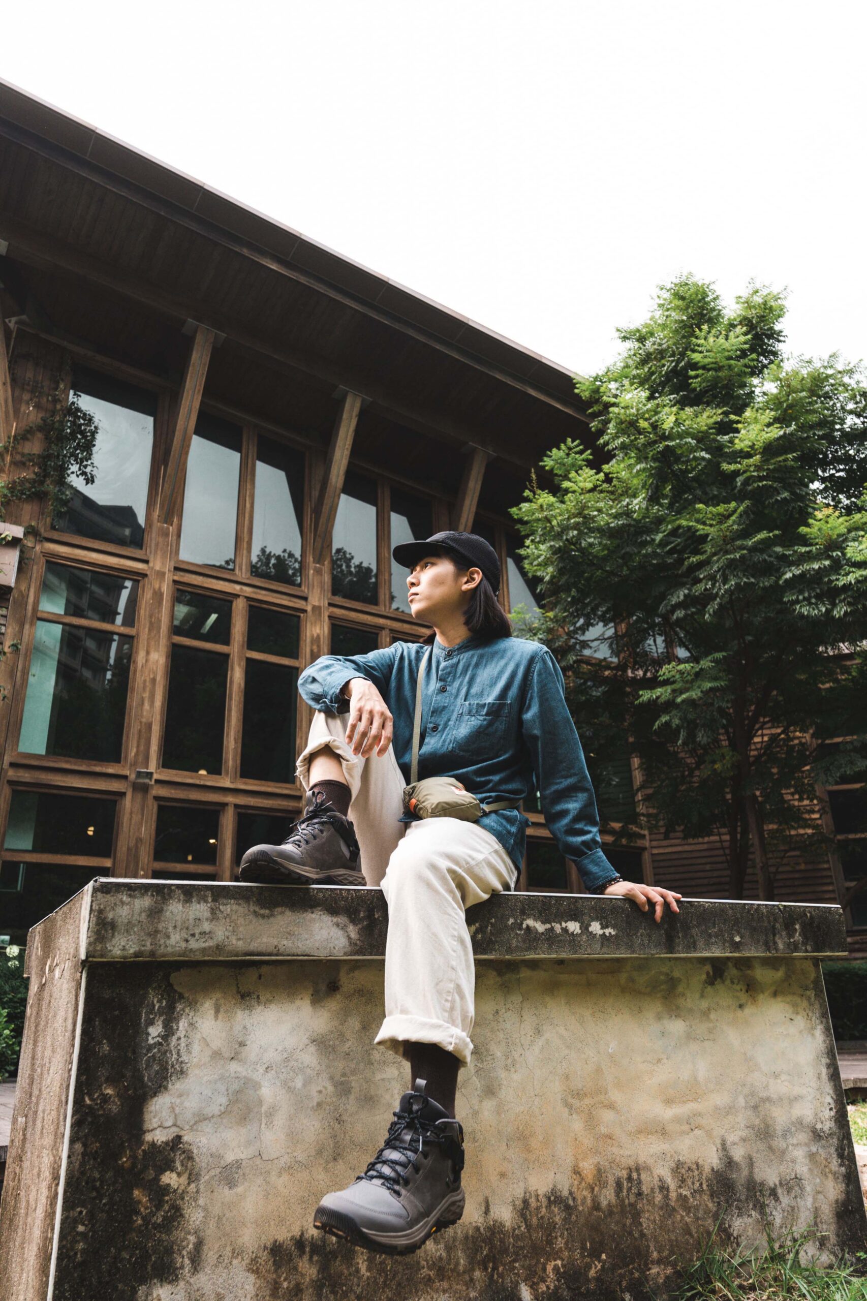 戶外課程結束後,我們和翰文來到台灣首座綠建築圖書館—臺北市立圖書館北投分館,北投圖書館就坐落於北投公園內,綠意盎然、鳥語書香,更與生態保育為特色的館藏呼應,讓你更能走讀於這樣的漫城步調,寫意漫步於山林、愜意神遊於書叢,而翰文則挑選了一本名為「台灣的山脈」的書籍,繼續與我們分享五岳三尖一奇的隱密山林之美,而他腳下這雙 TEVA Grandview GTX 登山健行鞋,搭配城市穿搭卻也恰到好處地融入了這座城市了呢!