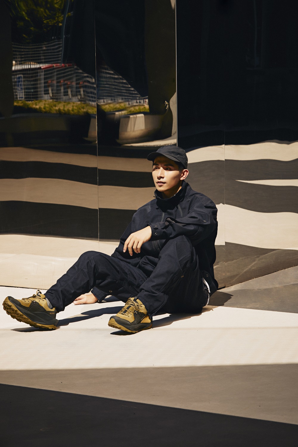 因應台灣的多雨氣候,在日常生活鞋款的防水機能也相當重要,林家佑選擇深色機能型服飾搭配黑綠配色的 ELIXIR GTX 低筒登山鞋完美展現山系穿搭風格。低筒 ELIXIR GTX 使用特殊 Gore-Tex 防水膜材質以抵禦各種嚴峻的氣候條件,搭配 Salomon 經典的 Sensifit 鞋面包覆科技,提升鞋面與雙腳貼合精準度,其採用 R Camber 弧形大底結構,並結合5mm的鞋齒深度,提供使用者順暢的步伐轉換和足夠的排砂、排泥特點,各式創新的機能性承襲勇於突破的品牌精神,再加上兼顧外型與機能的完美融合,更加體現近期蔚為風潮的山系穿搭風格。