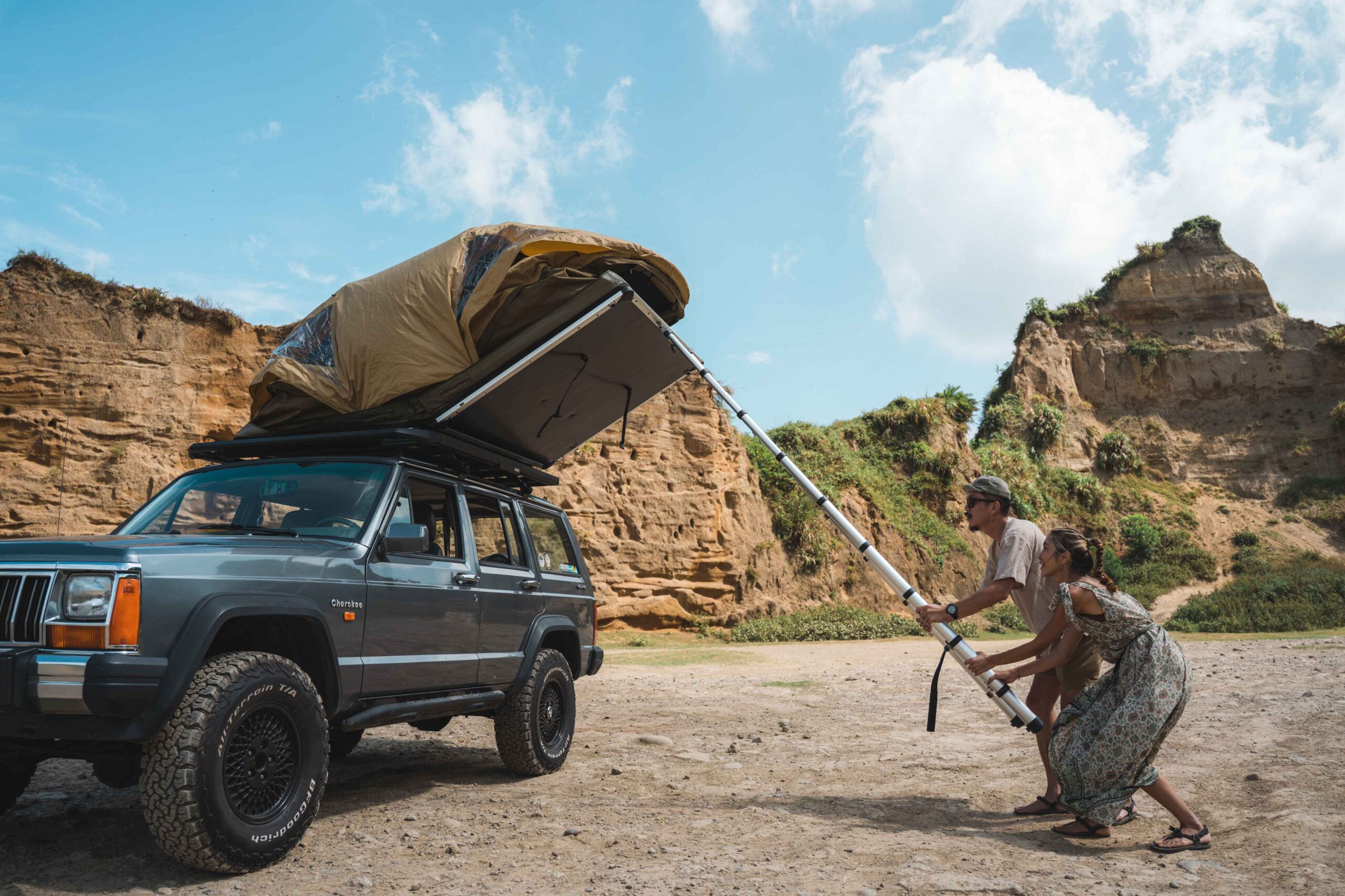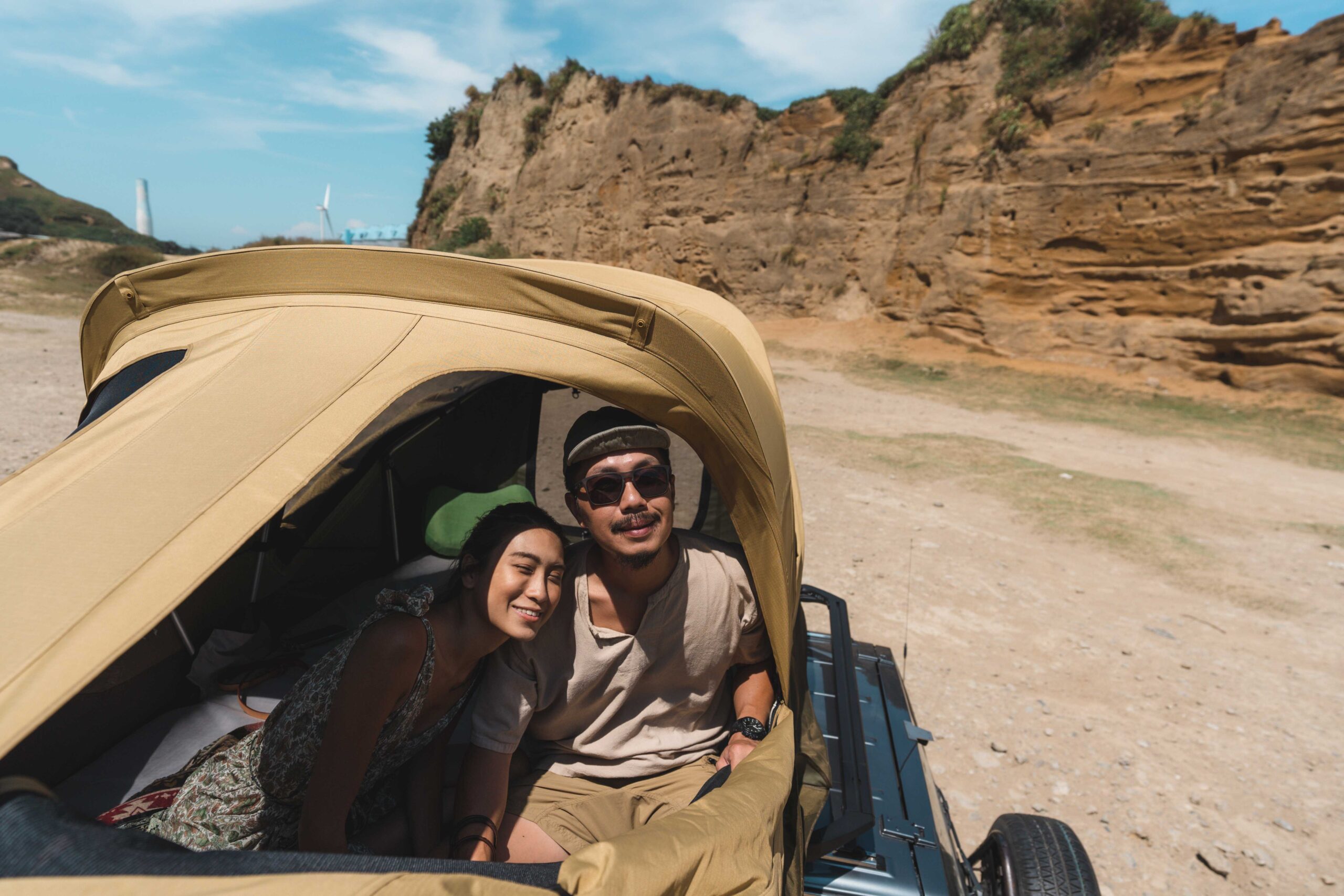 經過那次有驚無險的經驗後,兩人也更重視戶外風險評估及活動安全管控,説到戶外安全,除了須隨時關注天氣預報,越野穿越更需要有夥伴的隨行,才能互相幫忙、脫離困境,而在戶外更重要的是有個遮風避雨的地方,就如同今日車上這頂 Thule Approach 般,是冒險與安全總和的具象化,Kris 與我們分享今日體驗 Thule Approach 的心得:「四輪驅動越野車,能幫助我們更深入大自然的核心;而 Thule Approach 車頂帳天窗設計,更讓我們能安全的坐擁大自然的給予。」Maggy 則忍不住喜悅地說:「我們真的很喜歡星星,這樣就可以躺在二樓看星星了!」是啊!擁有遮風避雨的外帳是能提供戶外安全,搭載天窗又更讓人身歷其境,就如同 Thule 一直以來的品牌精神般,助戶外玩家能在安全的情況下,全心全意地放膽冒險、探索未知!