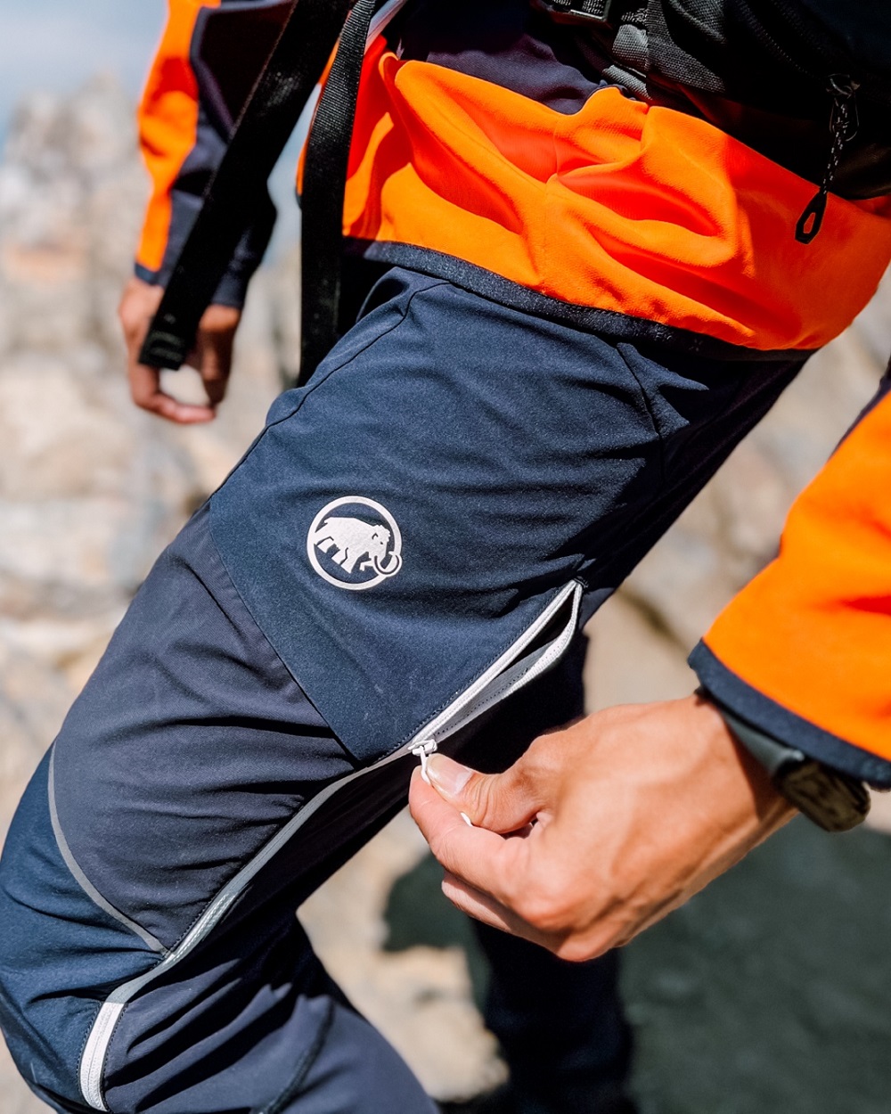 ⽽褲款是 Eiger Speed SO Hybrid Pants,側邊拉鍊⼝袋 3/4長度雙向拉鍊可輕鬆透氣與穿脫加上三⾓褲擋設計與膝蓋的立體剪裁,讓我們在需要攀岩跨非常⼤步的時候擁有更⼤的活動度,真的是⼀套很棒的登⼭服飾。