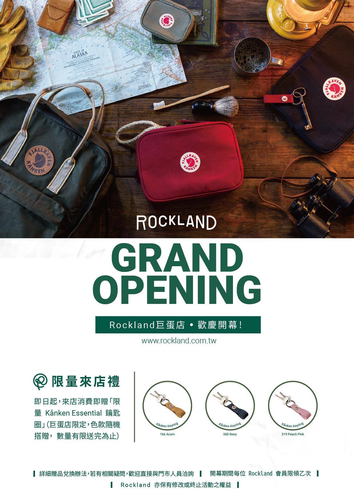 慶祝開幕,會員朋友只要在 Rockland 巨蛋店消費,就贈送「 Kånken Essentials 鑰匙圈 」一個 (每位會員消費現領一次)