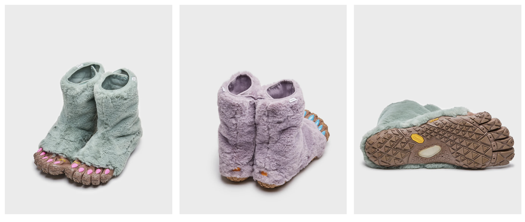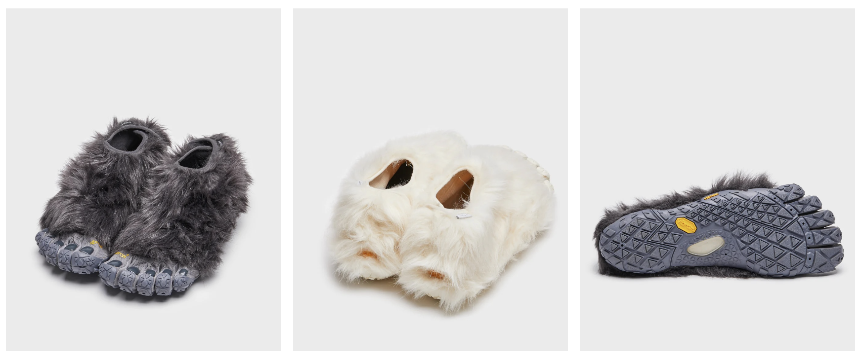 由 Vibram、Suicoke 及 Midorikawa,三方聯手竟在鞋履上增添絨毛,提供翻玩新高度,集結潮流時尚、戶外運動及荒誕惡趣於一身的鞋履,融入高筒及低筒配置,提供多種時下流行的多巴胺色系供選擇,你甚至可以藉由這些鞋款喚起你對怪物的印象,雪人、大腳怪等都在白色、黑色、紫色和綠色款式。