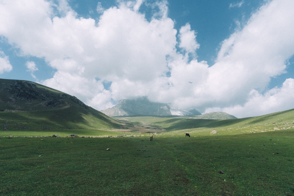 最後,童竹生說起最近一次登山經驗,是到北北印走七大湖健行旅程。最後一座湖泊,他選擇不去,留在營地,自在地四處走走、取景。「那一次我就看到了當地牧羊人正在趕羊,讓我印象很深刻。」