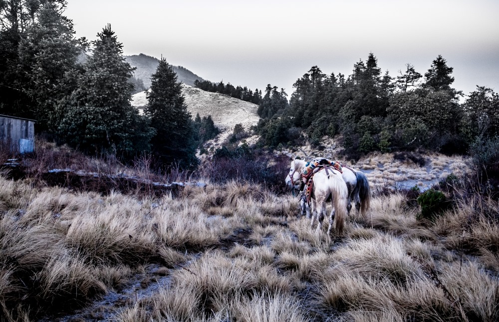 別說對當地山域的認識,兩人連適合登山的裝備都沒有,幸好當地登山產業發展健全,就算兩手空空,只要隨便走進一家登山用品店,就能補齊所有登山必需品。童竹生笑說:「像是我後來用的登山杖就是在那邊買的,才 100 元。」當時的他對於登山需要什麼裝備沒有概念,看了看腳上的馬丁鞋,他心想應該是沒問題吧?就穿著馬丁鞋,與同伴跟著嚮導踏上普恩山小環線的行程。