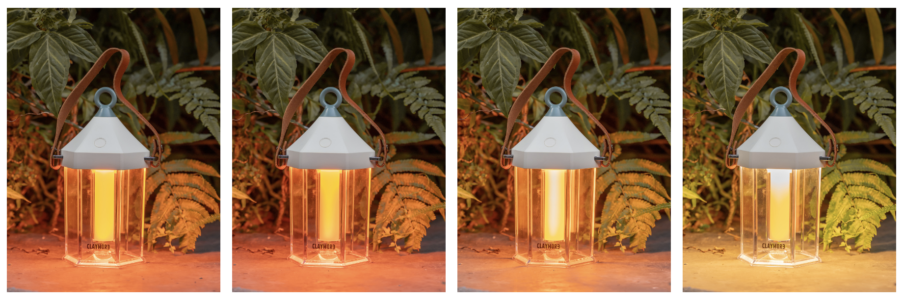 與 Selene 相同規格,Claymore Lamp Cabin 搭載四種不同的照明模式:微風、日落、全月、日出,象徵著一日晝夜的光源變化。微風模式(色溫 1300k-1500k)打造如同篝火般的光影變化,有呼吸律動感的燈光,更顯自然生動,也輕鬆為露營美學質感加分;日落模式(色溫 1300k)則提供有如魔幻時刻般的橘紅暖光,全月模式(色溫 1500k)賦予如皎潔月光般的明亮形象,日出模式(色溫 3000k)暖黃色光源,提供卓越的照明效果,可作為桌邊燈、閱讀燈、手提照明燈等,除戶外應用,與產品名稱呼應的居家情境應用同樣適宜。