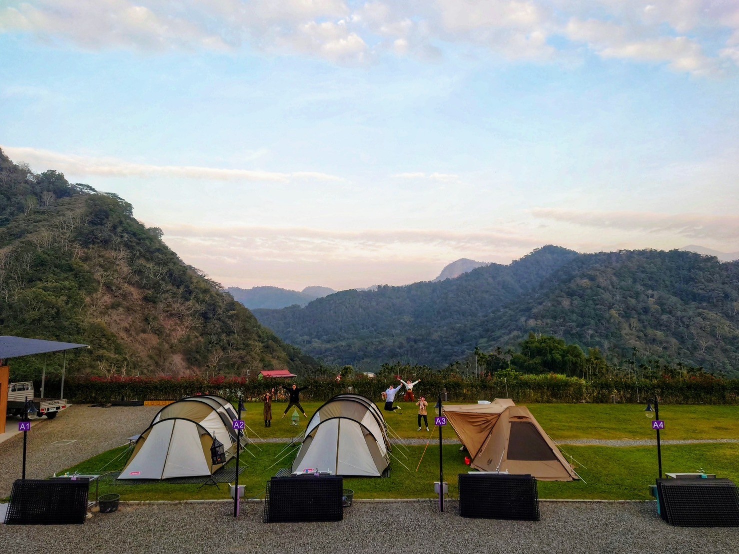 同樣位於南投縣的勁晴露營區,是一個擁有大片草皮與絕佳視野的露營區。Take A 露兩人十分推薦帶寵物來此露營區,原因是搭帳區前會預留一大片草皮,且帳與帳之間有充足距離,不用擔心毛小孩被別人影響,還可以盡情在大草皮奔跑玩耍。此外,勁晴露營區的衛浴採用一帳一衛浴設計,且有乾濕分離,深獲兩人喜愛。