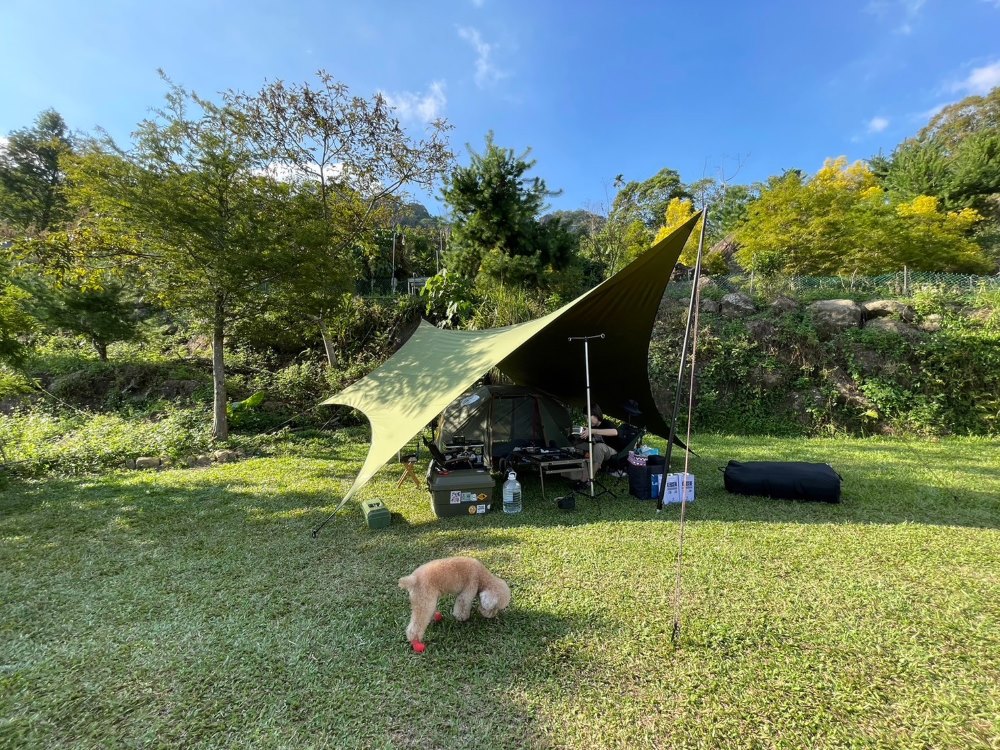 滾石部落露營場雖然沒有像勁晴露營區有大片草皮,但是提供了許多包區選項,無論是一帳還是四帳,甚至八帳,都有包區的選項。也因為有包區,Take A 露表示,更放心讓毛小孩在固定範圍的區域活動,比較不用提心吊膽,擔心毛小孩跑丟,或是去影響到其他人。