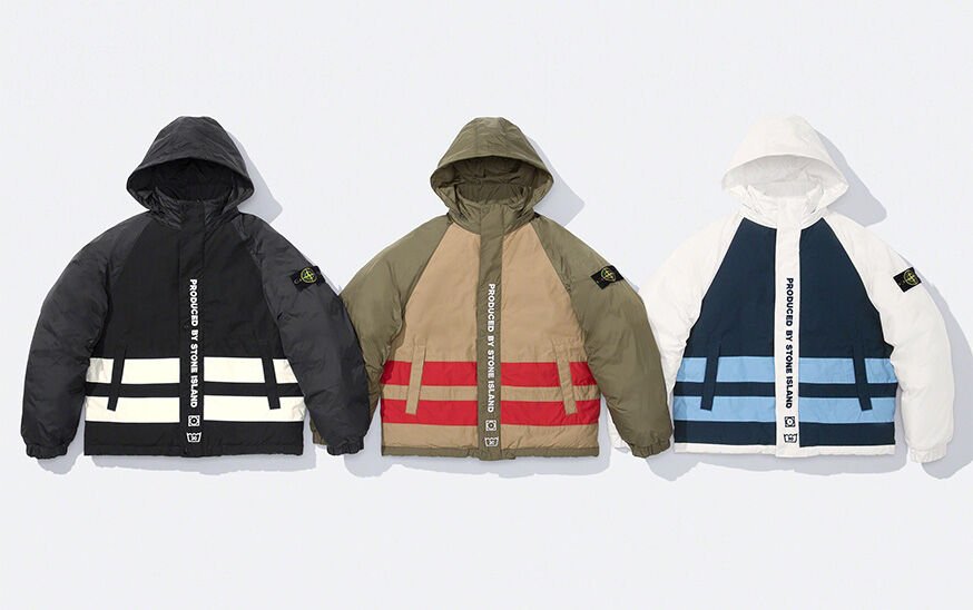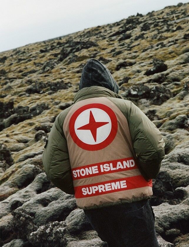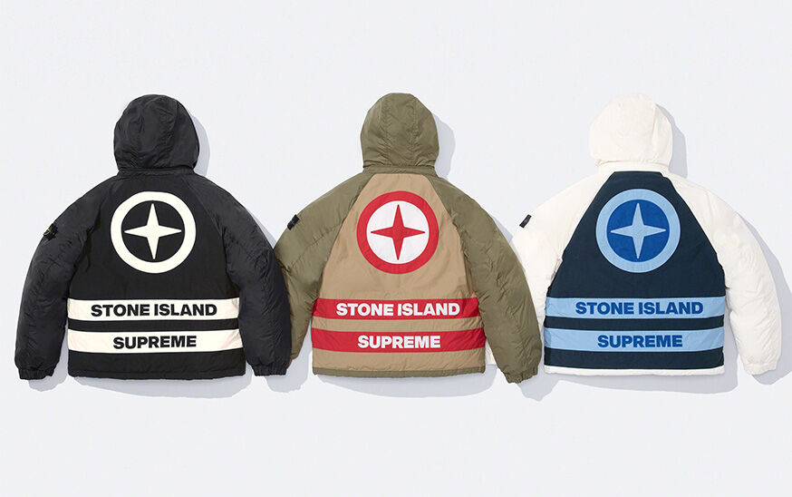 Stone Island 是一個義大利時尚品牌,成立於1982年。以其技術創新、高品質的服裝設計和獨特的材料科技而聞名,特別是在戶外和運動服飾領域更是有一席之地。與 Supreme 更是已經有多次合作經歷,今年的合作新品中包含:雙面羽絨外套、牛皮材質飛行夾克、棉質厚磅丹寧夾克、牛仔褲、羊毛混紡圈圈紗開襟衫…等多款品項,染色和反光等細節也是本次的設計亮點。