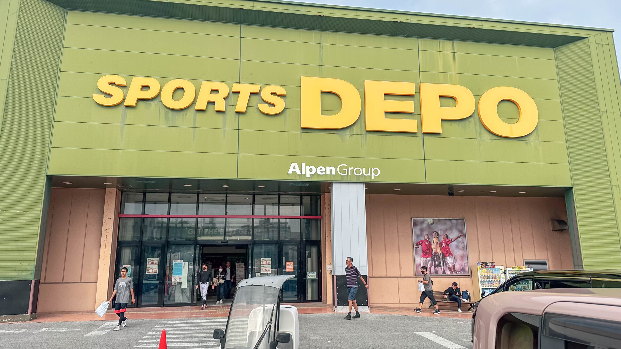 位於天九琉貿樂市,距離那霸市中心約 15 分鐘車程,隸屬於 Alpen 集團的 Sports Depo,雖不像 Alpen Outdoors 展售眾多戶外品牌,其展售導向以運動休閒為主,登山健行為輔,一般在台灣常見的品牌如:Hoka、Teva、Columbia、The North Face 等戶外休閒運動品牌皆可在此尋獲,也有許多台灣沒有的配色及款式。
