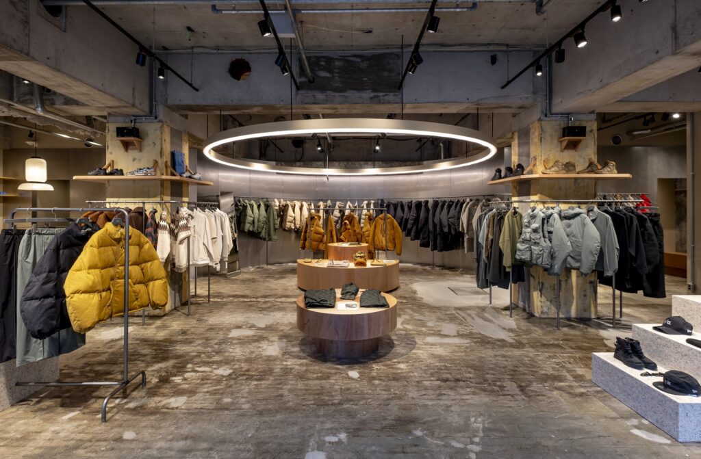 店內裝潢以混凝土和粗獷的支柱為特色,易於消費者觀看及選購,並能精心挑選、功能性及現代質感兼具的服飾、包袋及配件。除展示品牌產品外,店內更使用回收材料妝點,實踐 F/CE 積極參與環境永續之路。