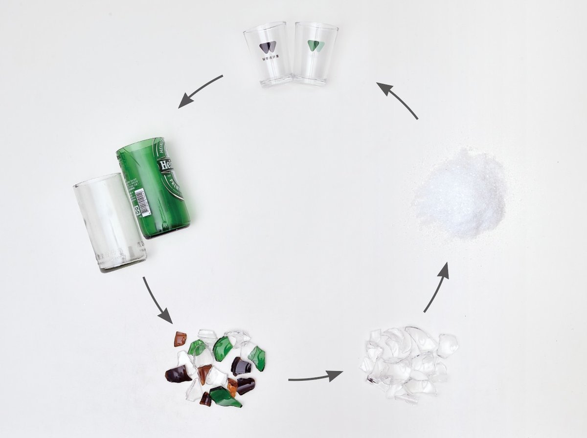 其實玻璃是可以 100% 環保的材質,如果做好回收的話,基本上是可以無限循環的。但玻璃的特性沉重易碎,且處理廢棄玻璃的過程相當繁雜、瑣碎,加上玻璃利潤非常低廉,回收價碼甚至不足金屬、廢紙的十分之一,很多業者因此拒收玻璃。