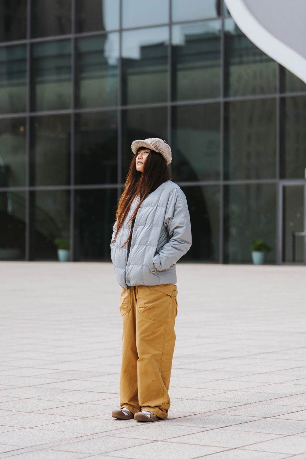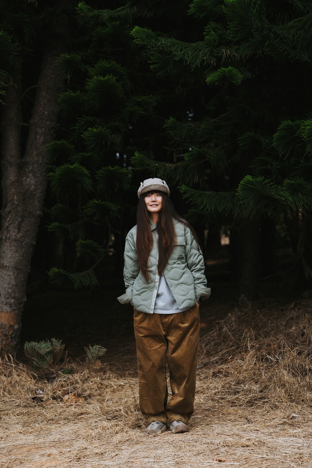 冬天喜歡多層次穿搭的呆呆,上衣選擇簡約素色的長袖,搭配燈心絨材質的寬鬆長褲,套上 EIDER 輕量鵝絨襯衫式外套,領子採用燈芯絨材質,整體營造秋冬氛圍,加上水平波浪拼接設計讓造型上更加分,整體達到 Oversize 的風格,又不會讓人有邋遢又隨便的感覺,穿得舒服自適又能展現率性的時髦。