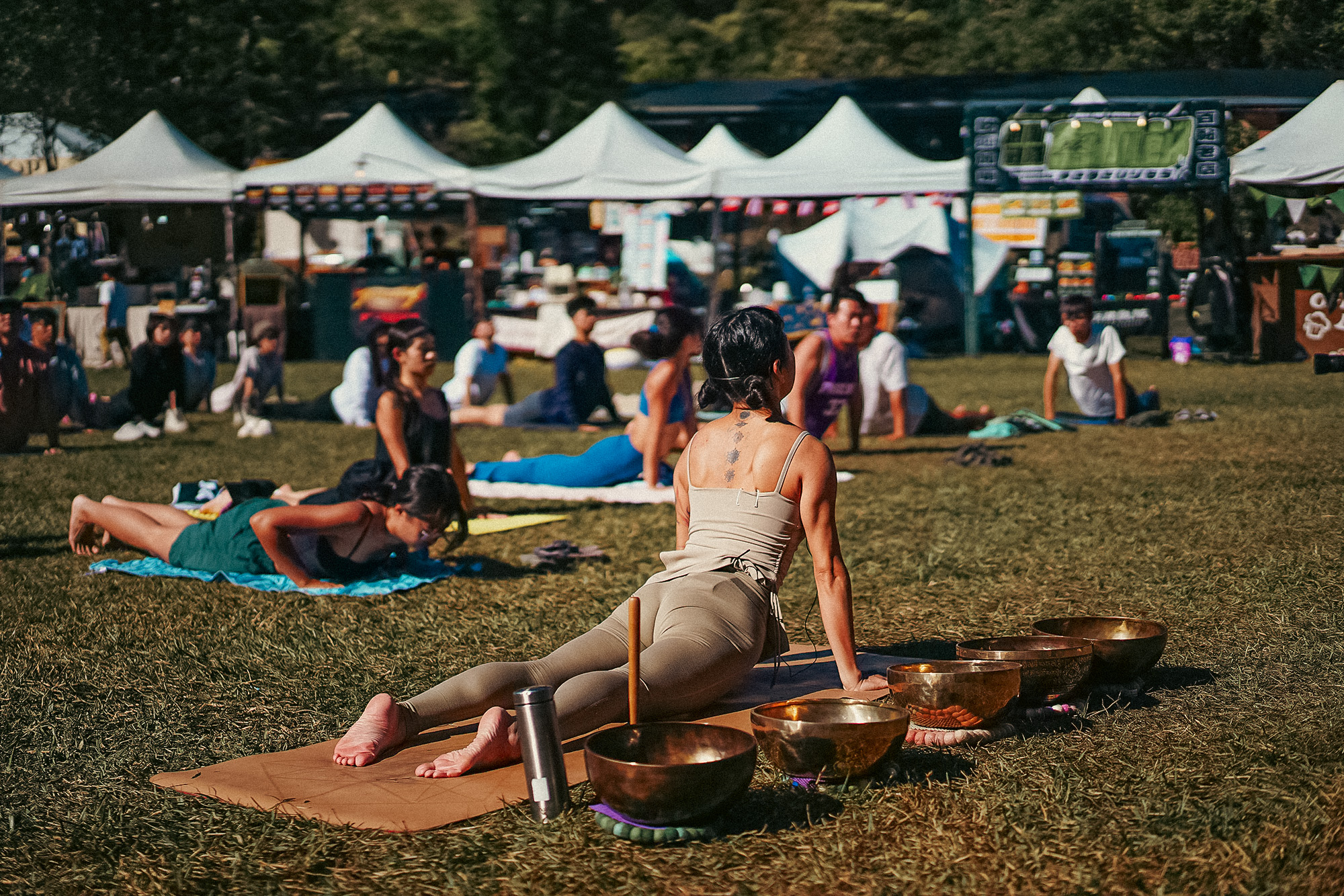 整備完裝備之後,也前往活動會場參加「瑜伽頌缽」體驗,這次由「謝謝身體 ありがとう!身体」的桃子老師帶領大家,而這次不只是單純地做瑜珈,還在最後大休息的環節時加入頌缽聲音,透過瑜珈,催眠,聲音療癒,迷幻肌肉放鬆等等⋯⋯讓聲音的傳導振動更直接穿透身體直至靈魂層面的療癒放鬆。
