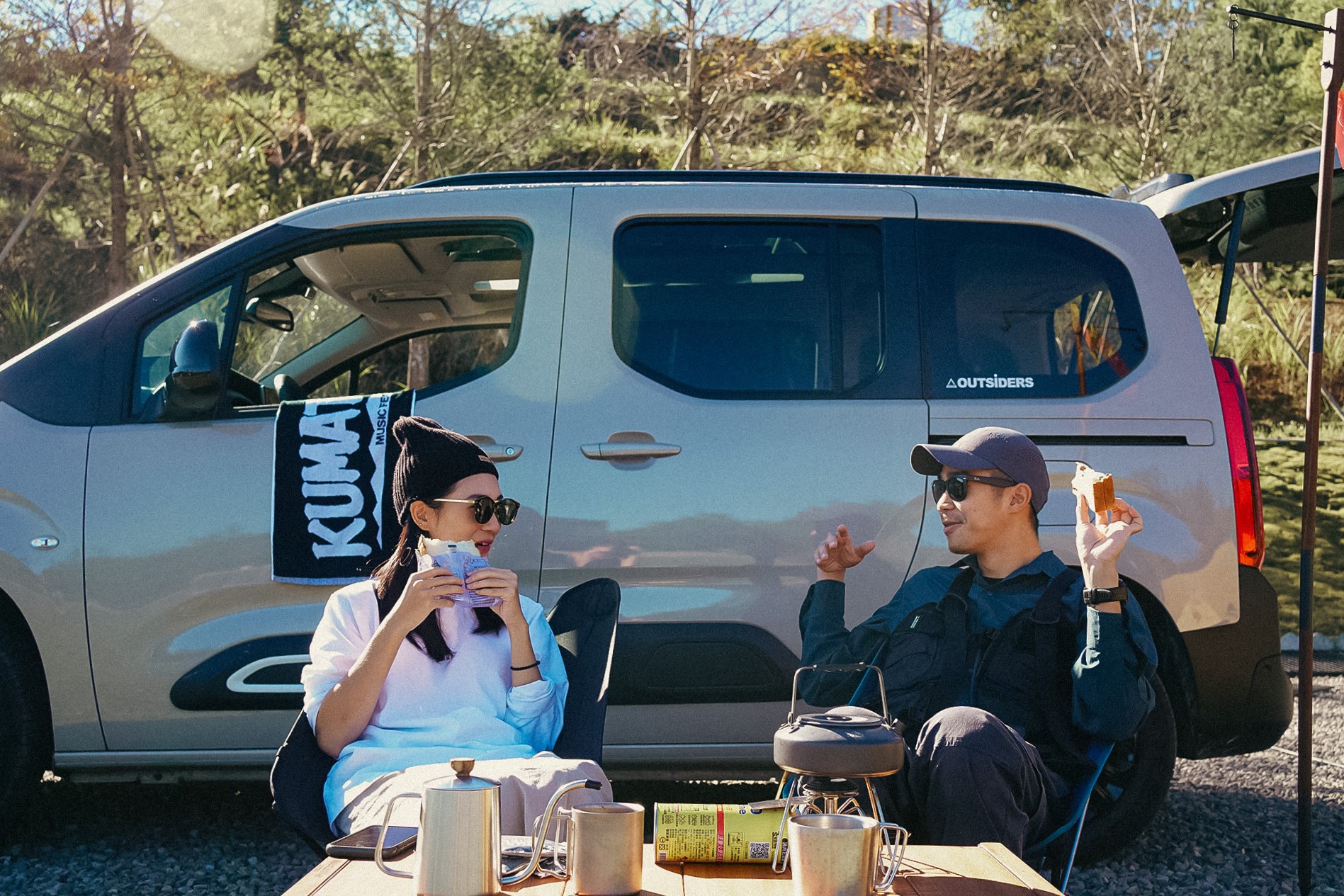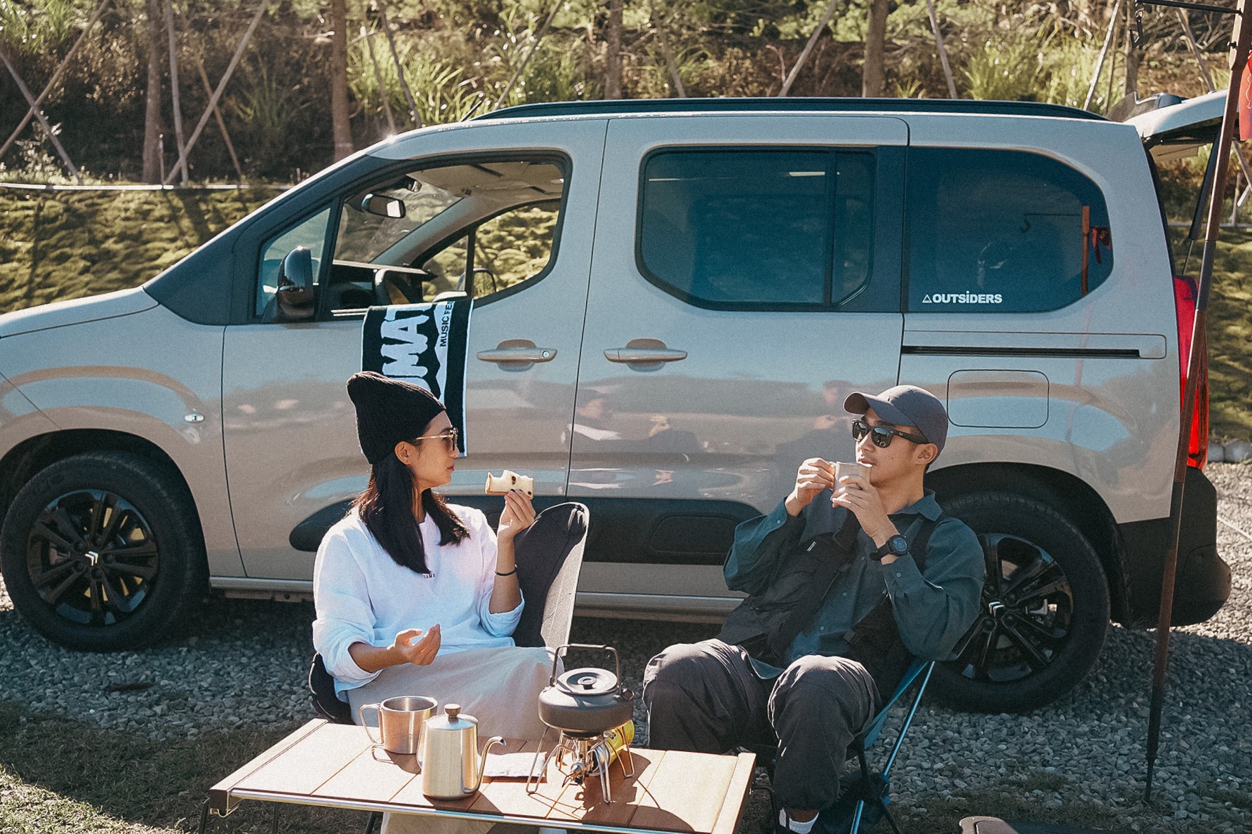 當我們趁著人潮較少在黑熊部落門口 Check in 時,將 Berlingo 停在入口處,別具風格的外型,加上金沙灰的配色,兼具法系的簡約風格,當現場工作人員看到這是屬於 OUTSiDERS 的上山下海夥伴時,也忍不住驚呼說:這工作車也太高級了吧,好羨慕喔!這大概就是開著這台車出去工作(兼玩樂?)最驕傲的時刻!