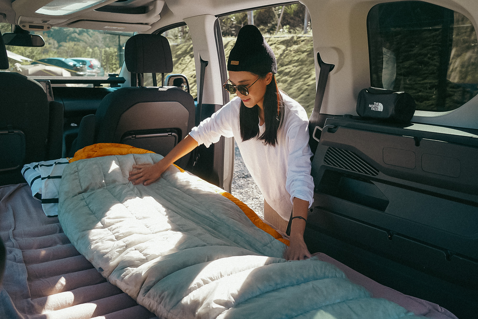 ▲車露使用充氣睡墊加睡袋。